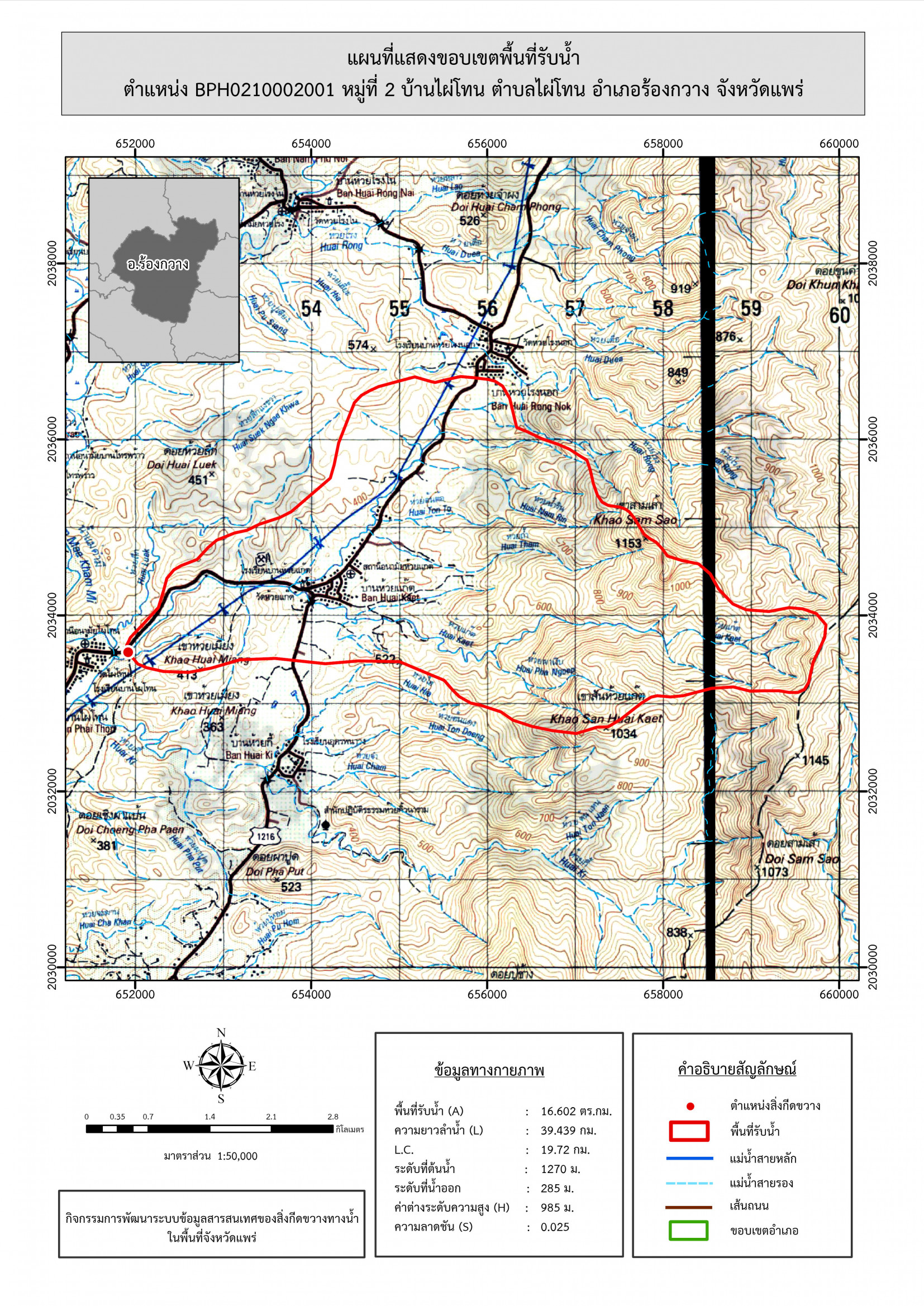 รูปภาพแผนที่แสดงขอบเขตพื้นที่รับน้ำ