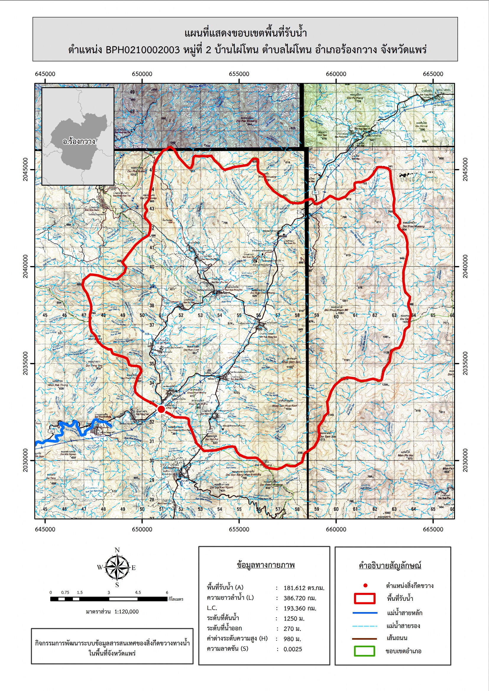 รูปภาพแผนที่แสดงขอบเขตพื้นที่รับน้ำ