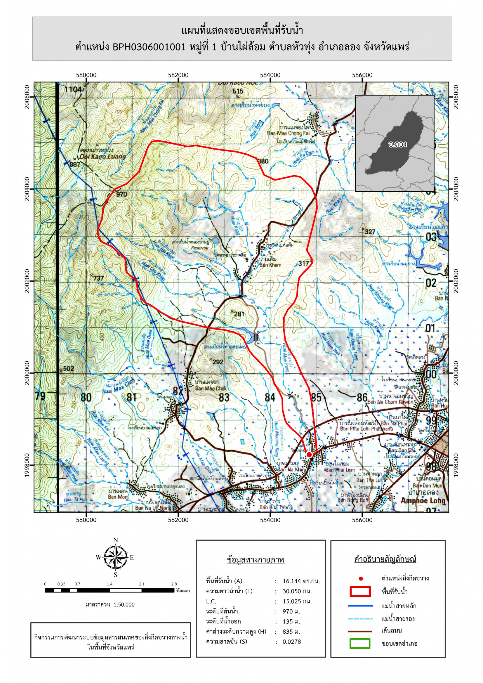 รูปภาพแผนที่แสดงขอบเขตพื้นที่รับน้ำ