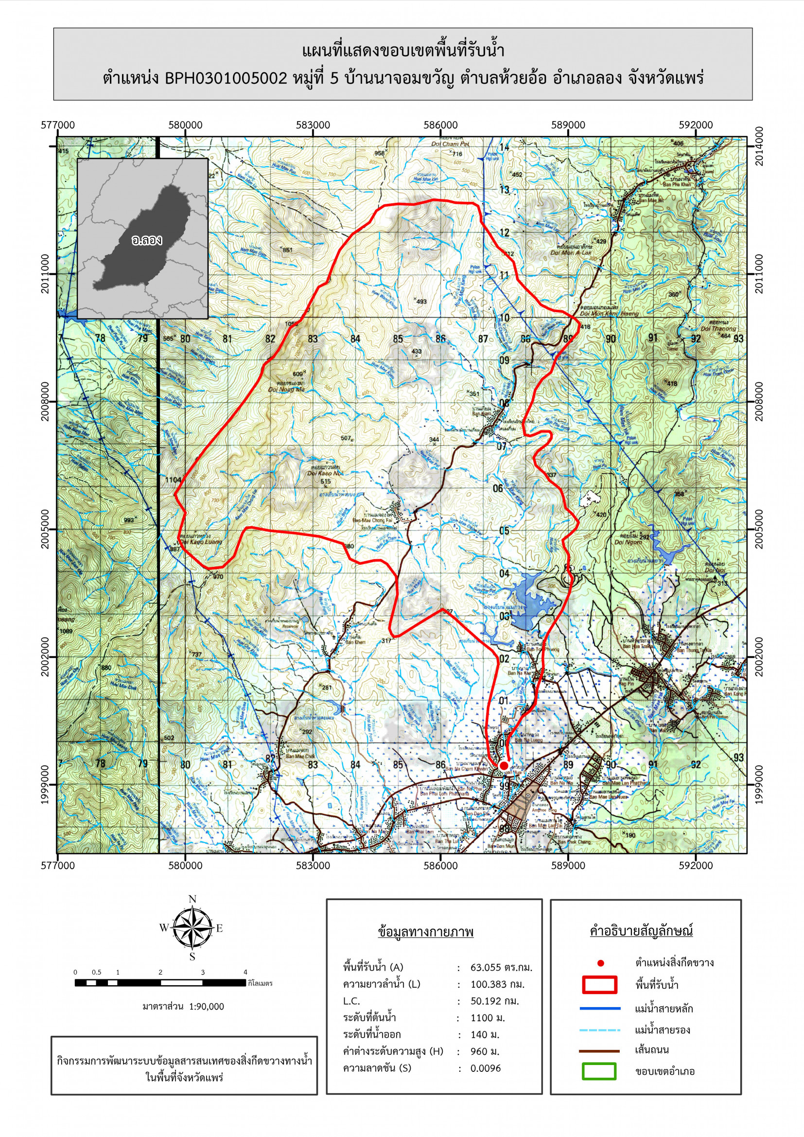 รูปภาพแผนที่แสดงขอบเขตพื้นที่รับน้ำ