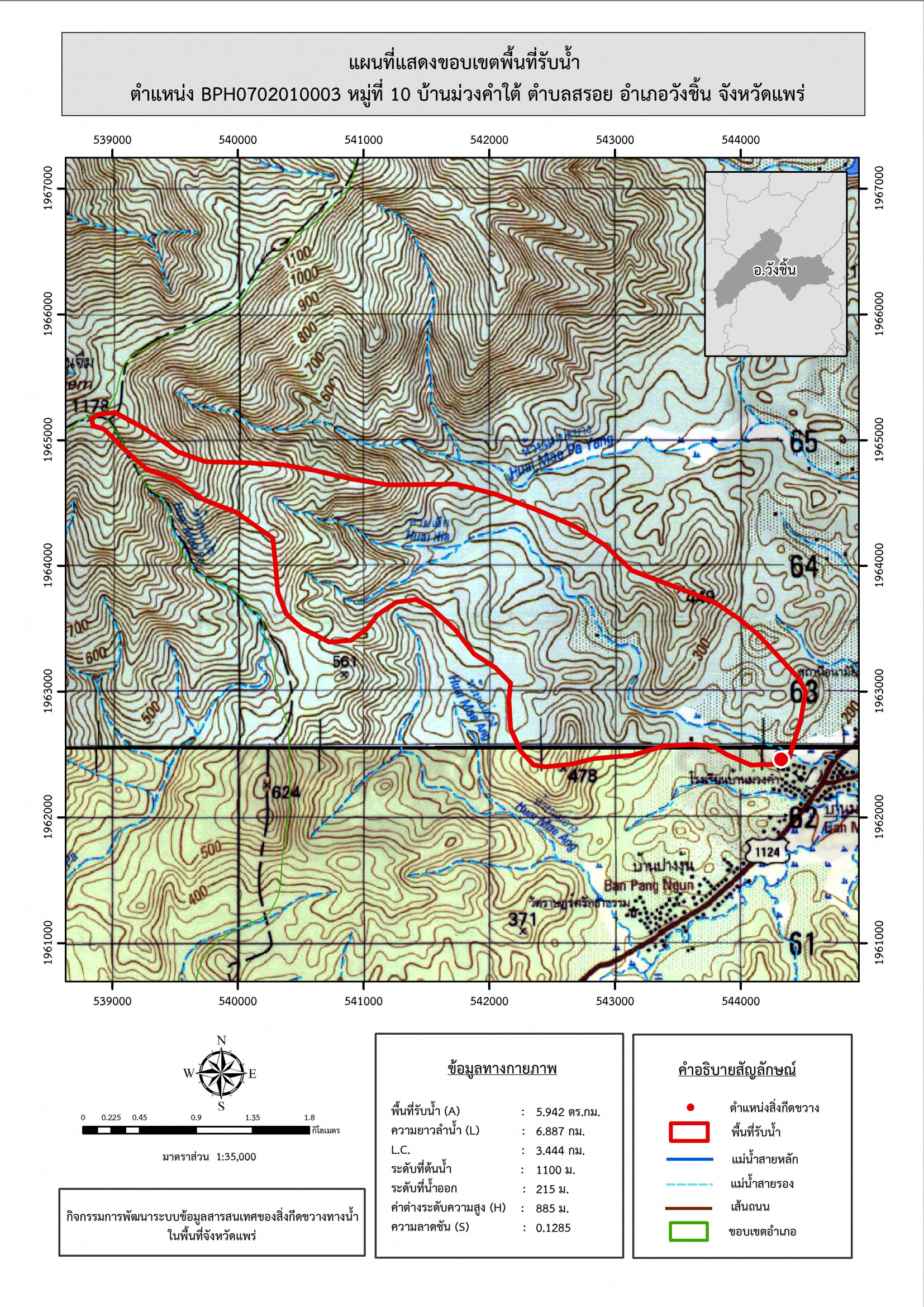 รูปภาพแผนที่แสดงขอบเขตพื้นที่รับน้ำ