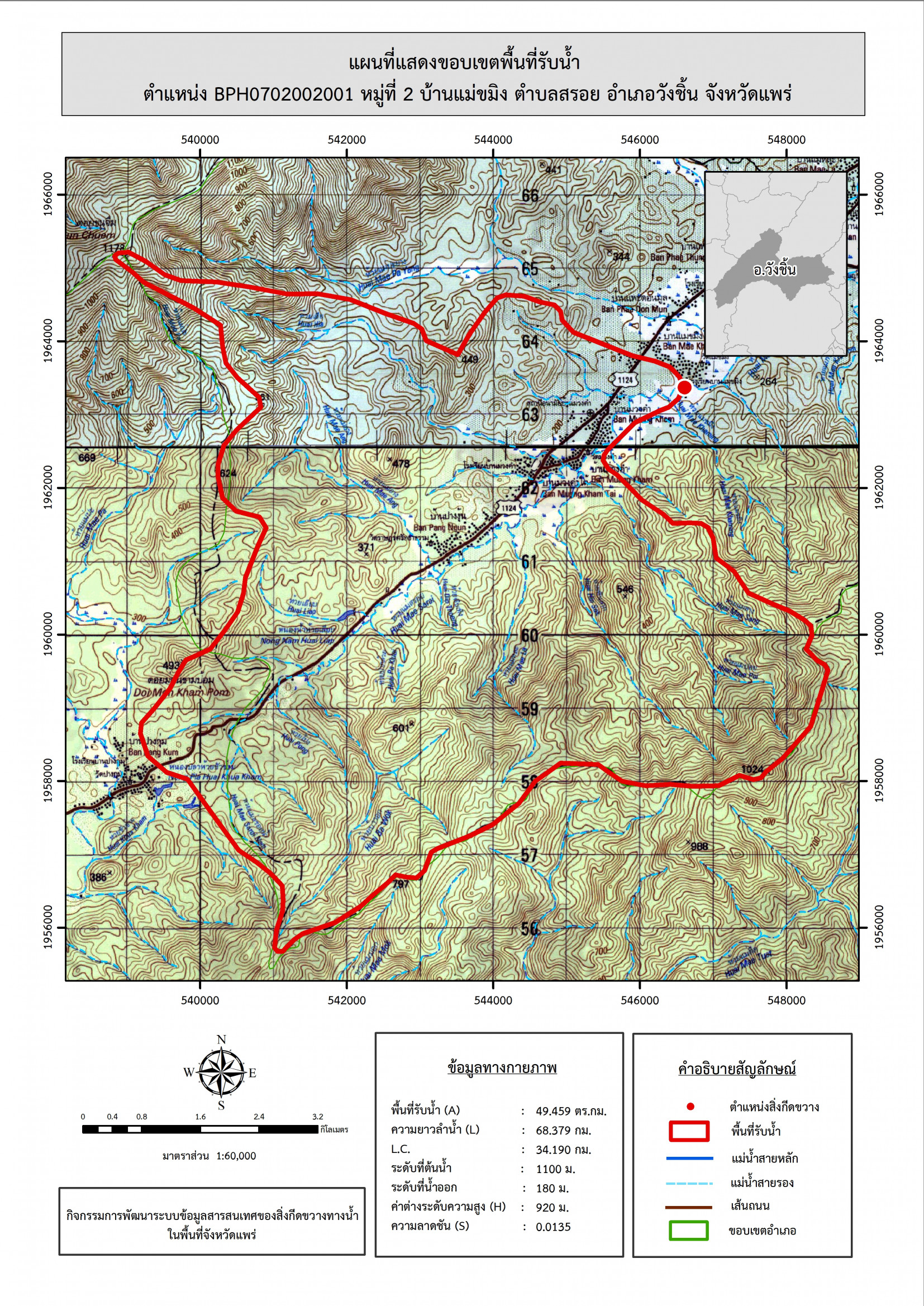 รูปภาพแผนที่แสดงขอบเขตพื้นที่รับน้ำ
