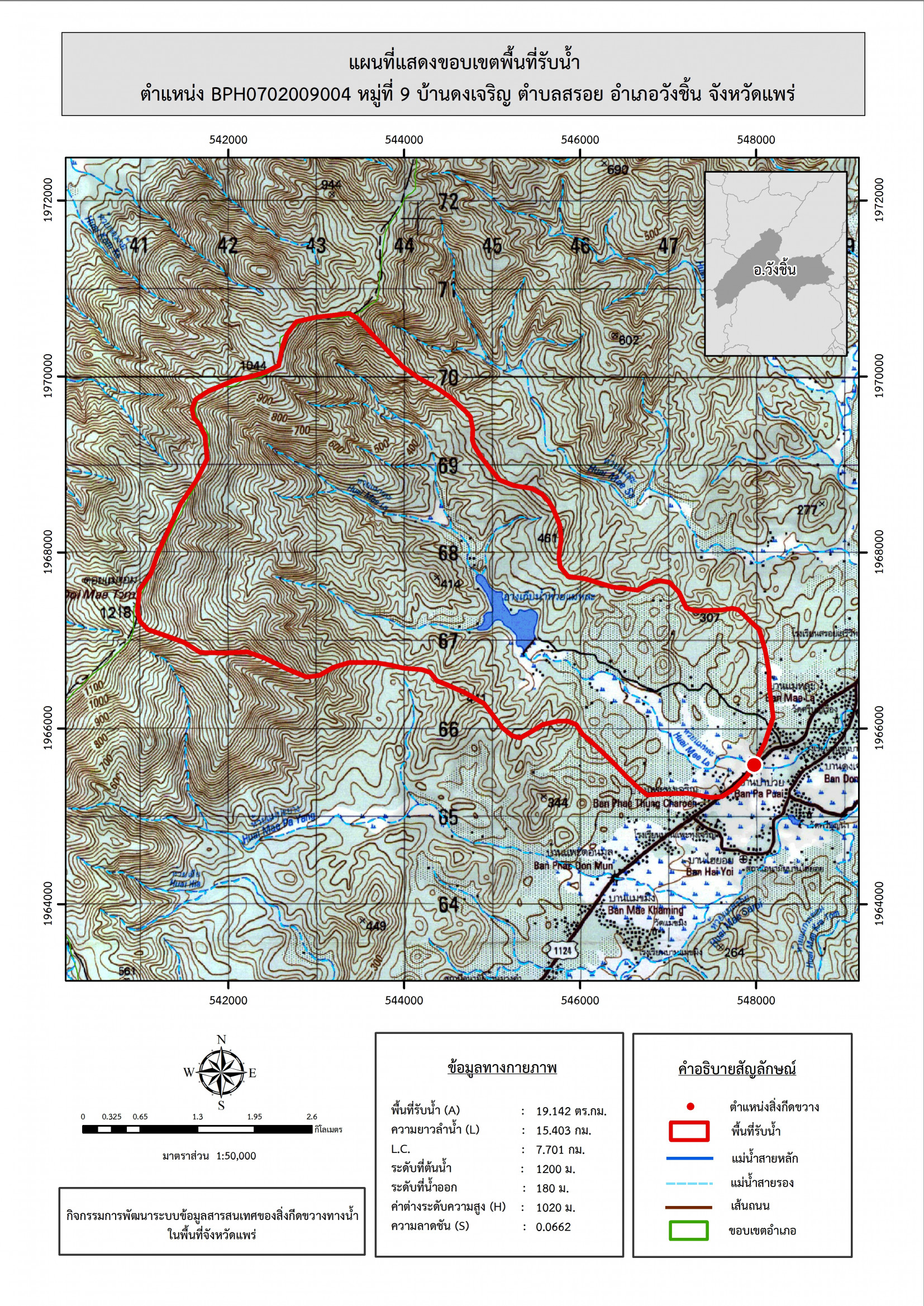 รูปภาพแผนที่แสดงขอบเขตพื้นที่รับน้ำ