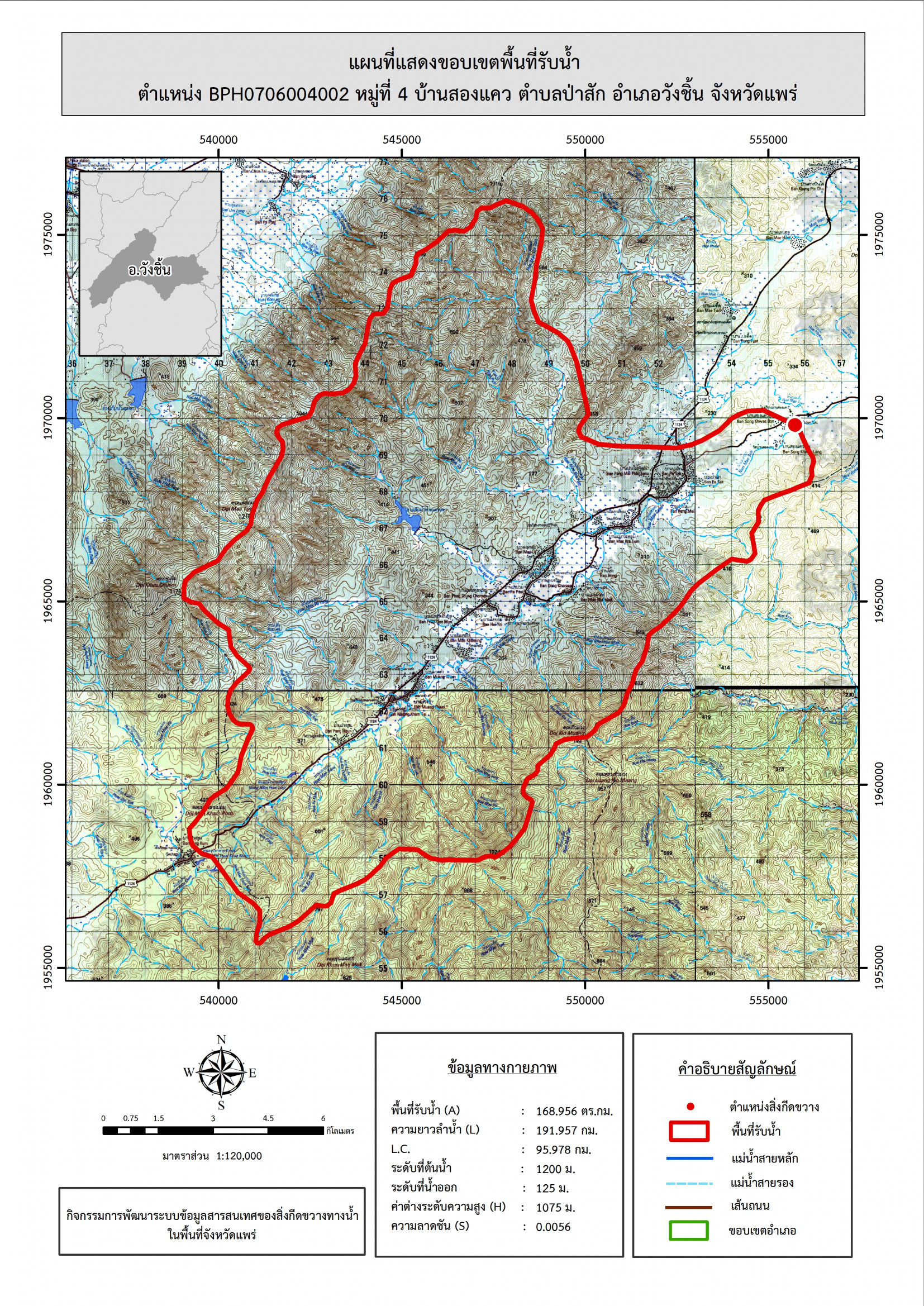 รูปภาพแผนที่แสดงขอบเขตพื้นที่รับน้ำ