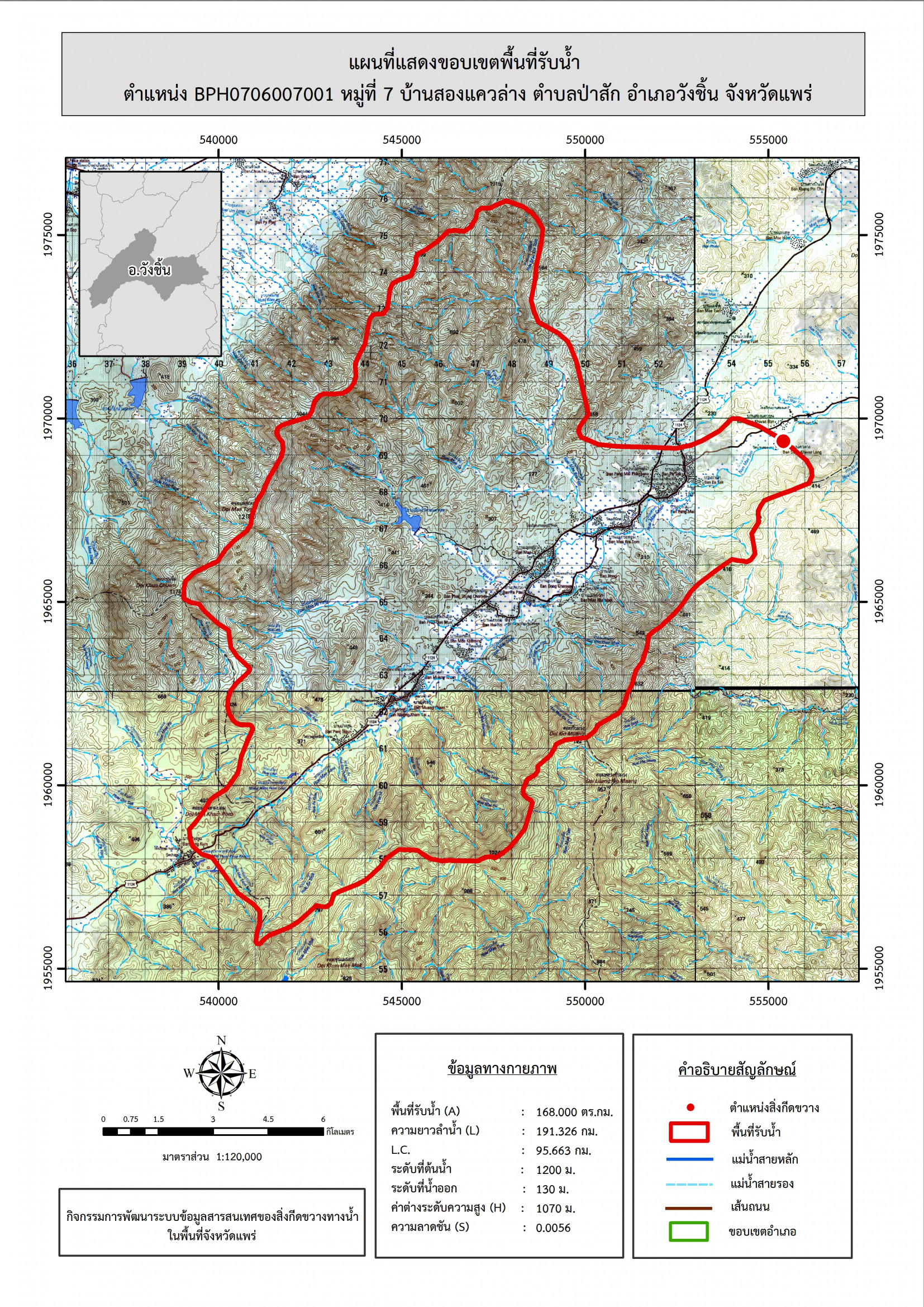 รูปภาพแผนที่แสดงขอบเขตพื้นที่รับน้ำ