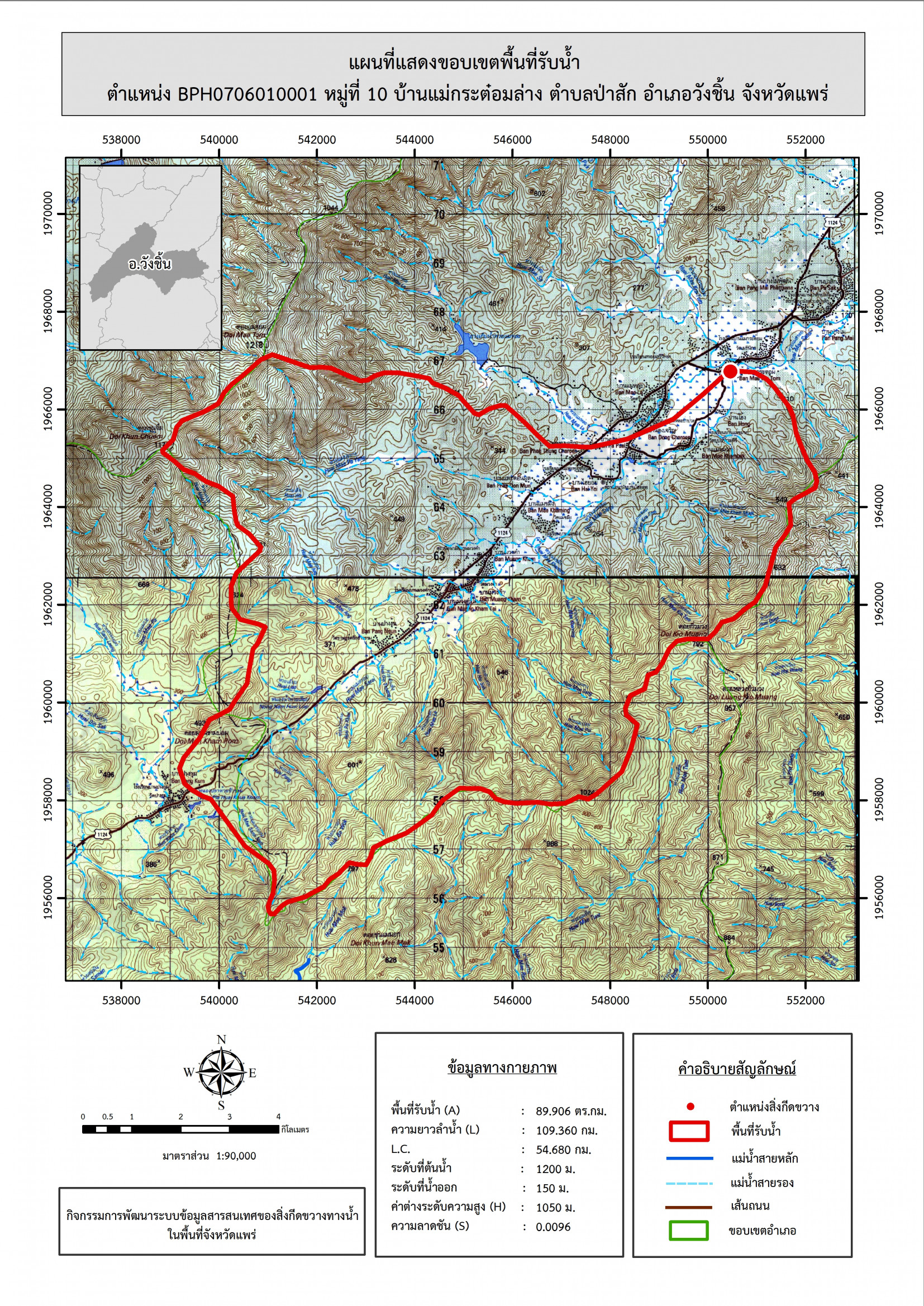 รูปภาพแผนที่แสดงขอบเขตพื้นที่รับน้ำ