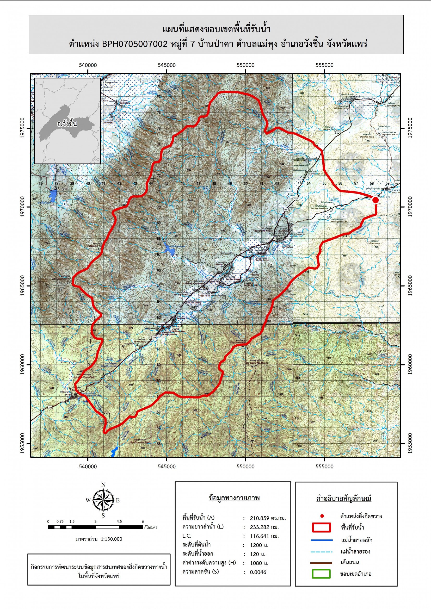 รูปภาพแผนที่แสดงขอบเขตพื้นที่รับน้ำ