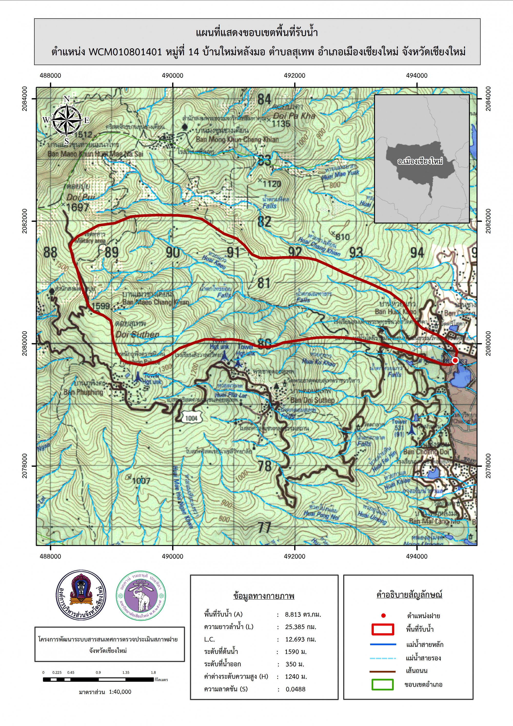 รูปภาพแผนที่แสดงขอบเขตพื้นที่รับน้ำ