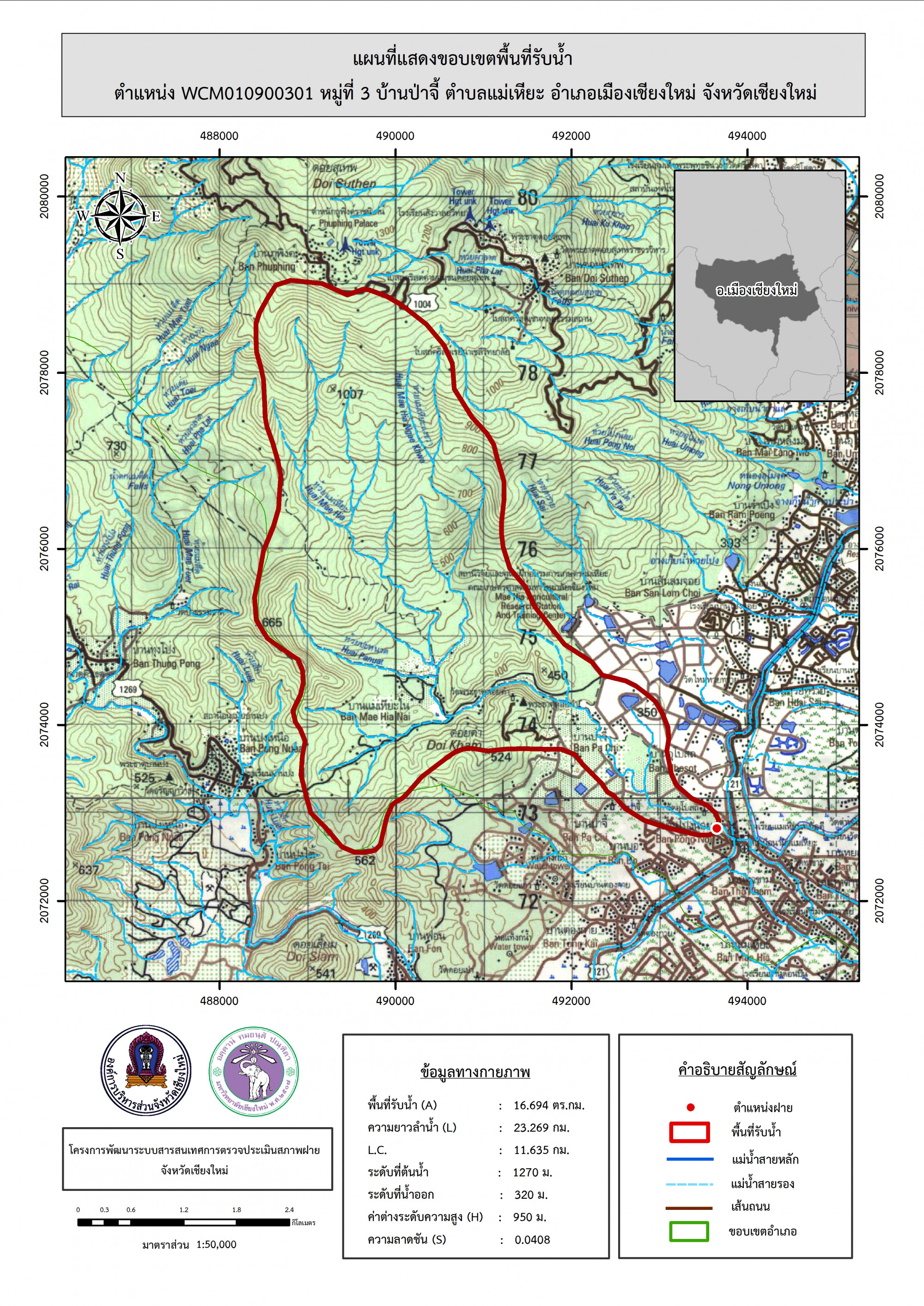 รูปภาพแผนที่แสดงขอบเขตพื้นที่รับน้ำ