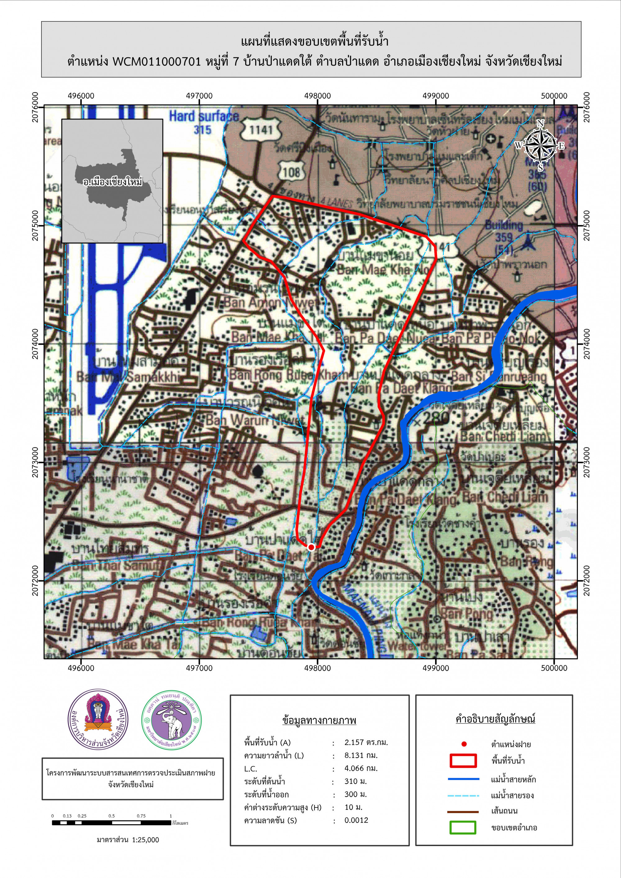 รูปภาพแผนที่แสดงขอบเขตพื้นที่รับน้ำ