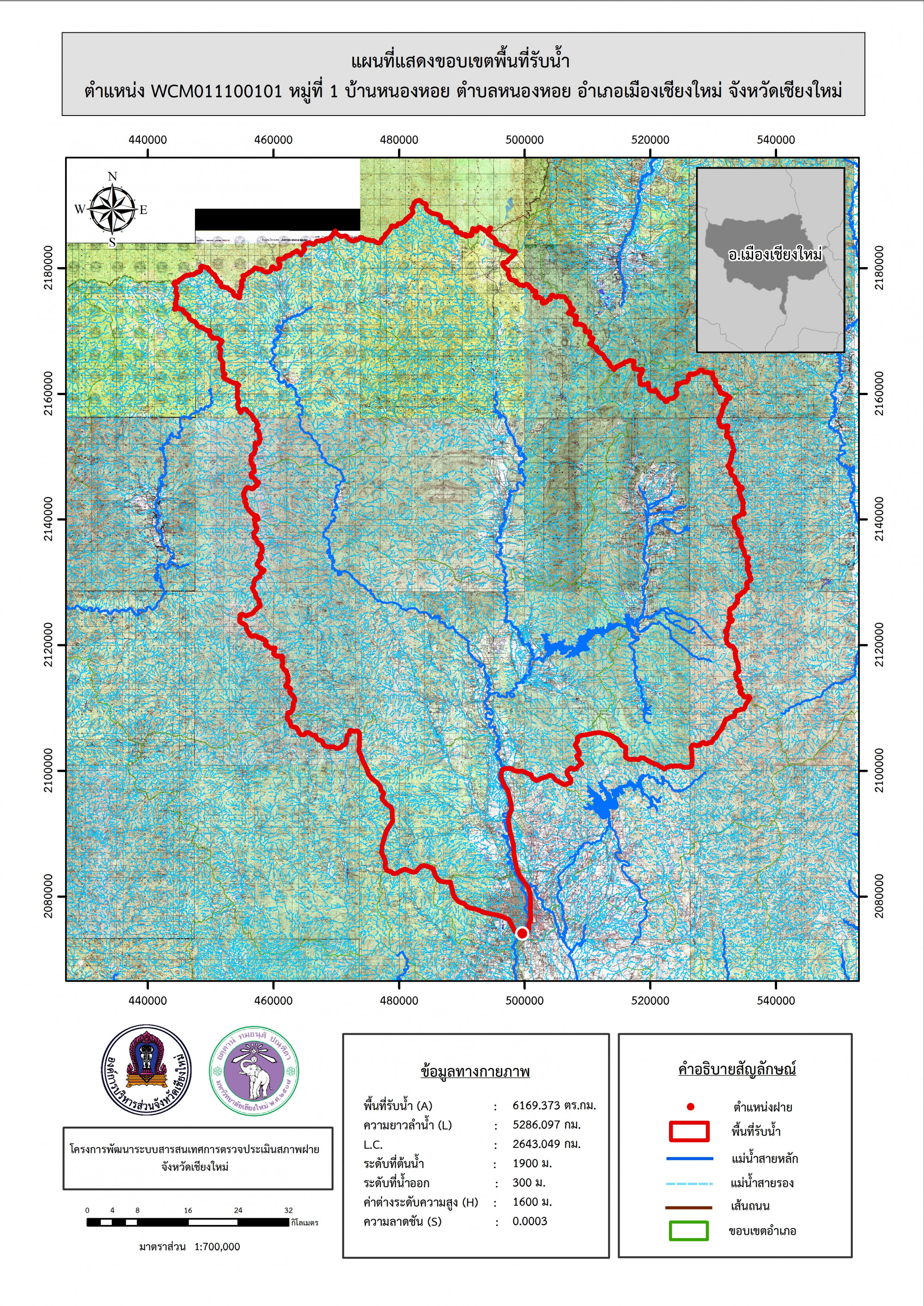 รูปภาพแผนที่แสดงขอบเขตพื้นที่รับน้ำ