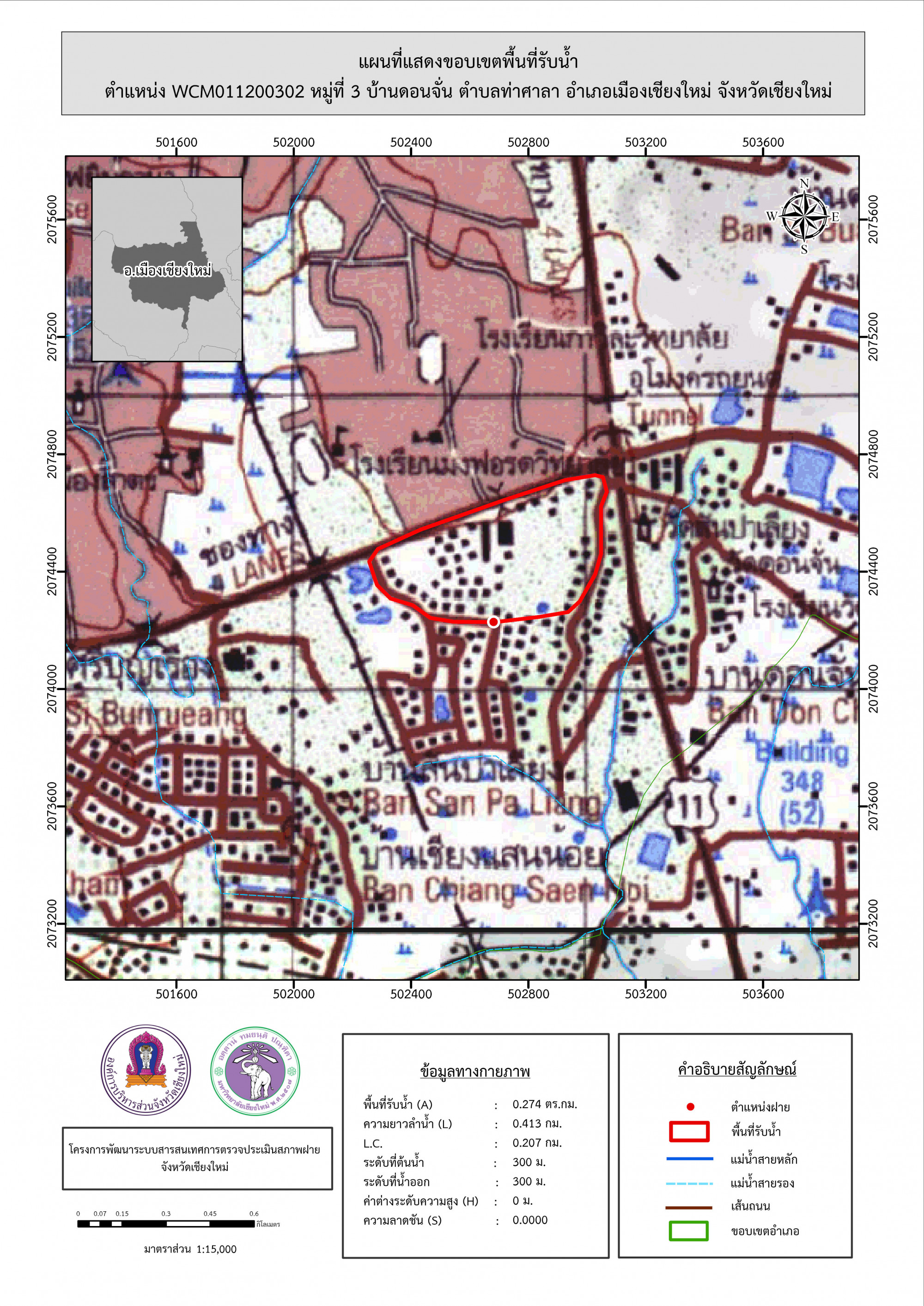 รูปภาพแผนที่แสดงขอบเขตพื้นที่รับน้ำ