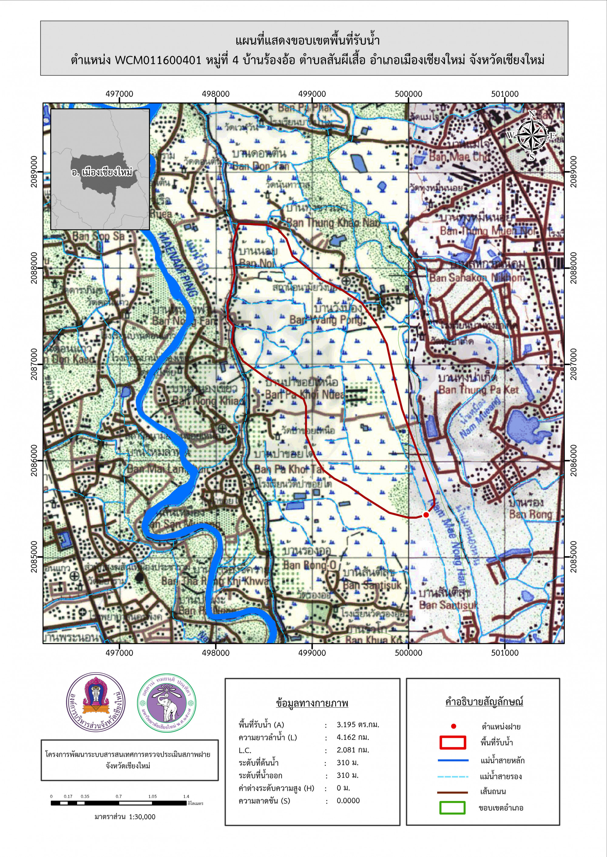 รูปภาพแผนที่แสดงขอบเขตพื้นที่รับน้ำ