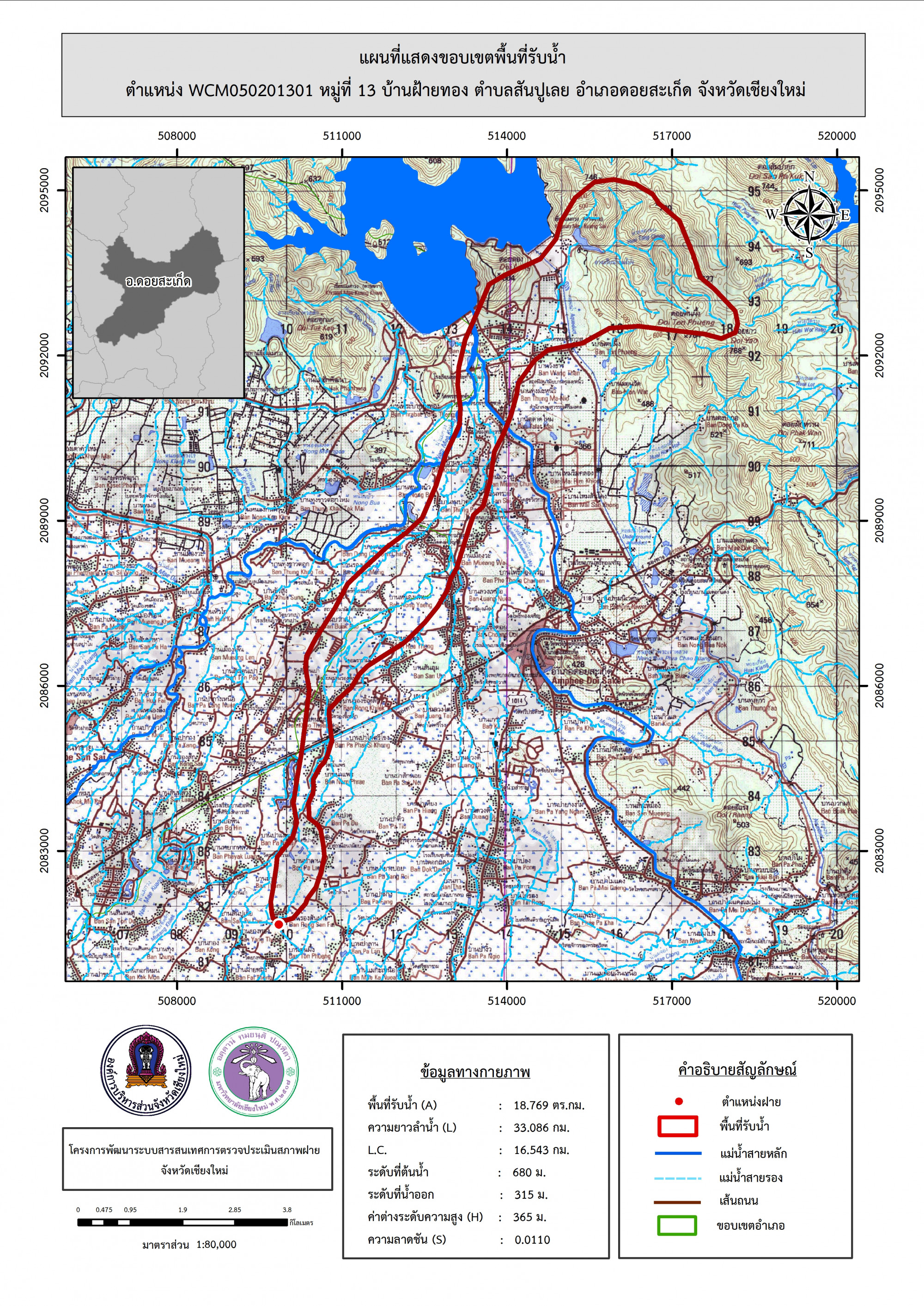 รูปภาพแผนที่แสดงขอบเขตพื้นที่รับน้ำ