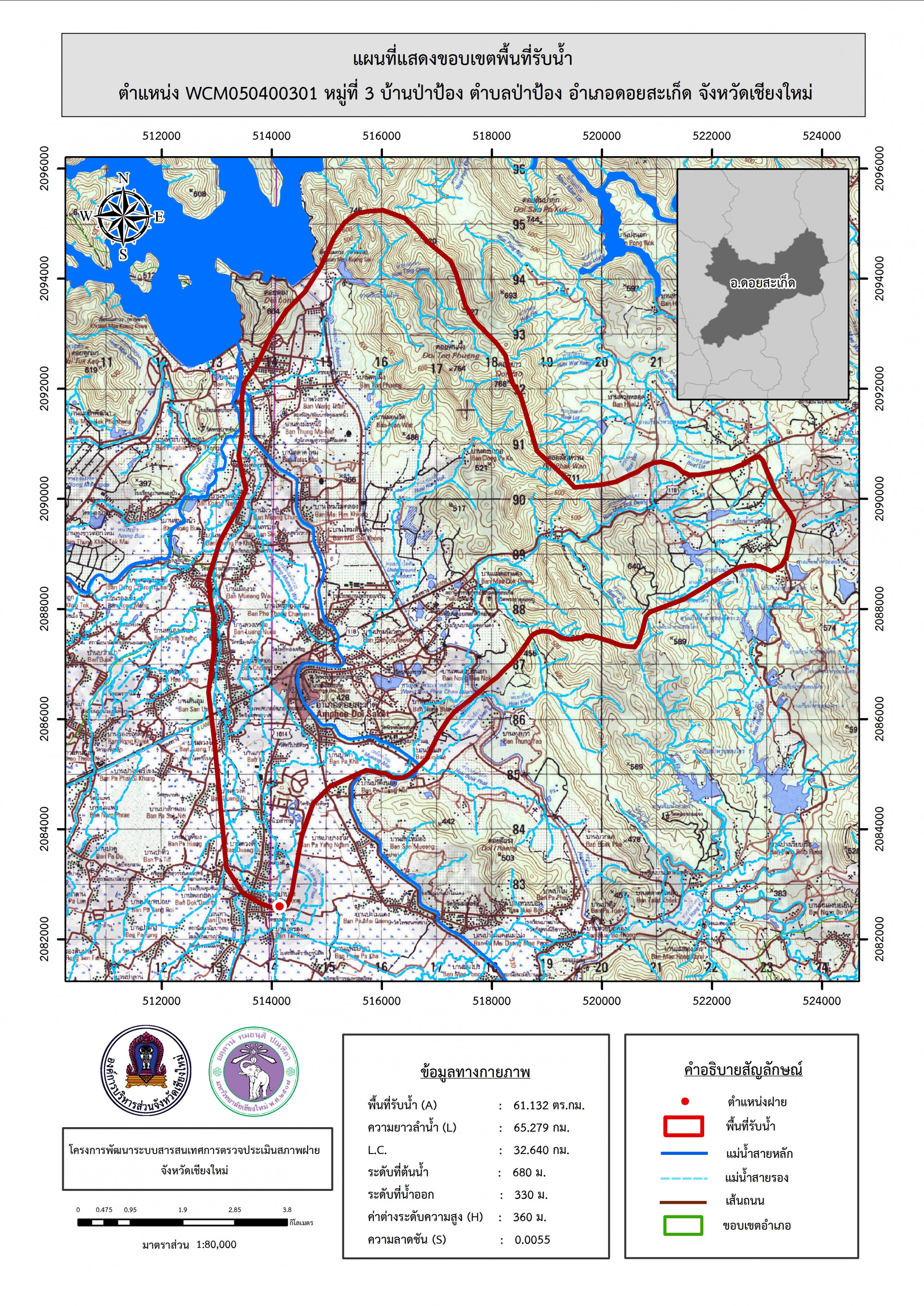 รูปภาพแผนที่แสดงขอบเขตพื้นที่รับน้ำ