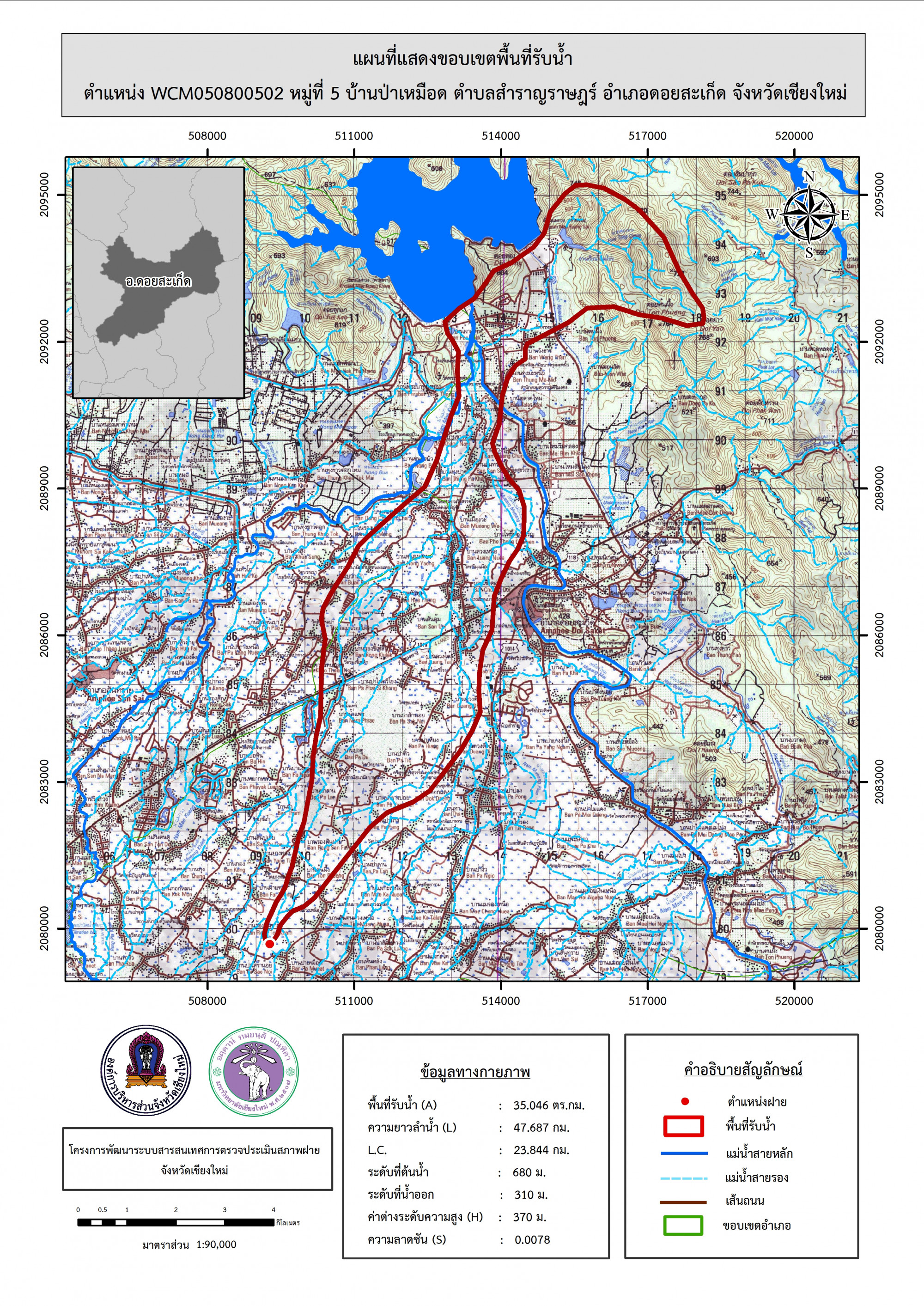 รูปภาพแผนที่แสดงขอบเขตพื้นที่รับน้ำ