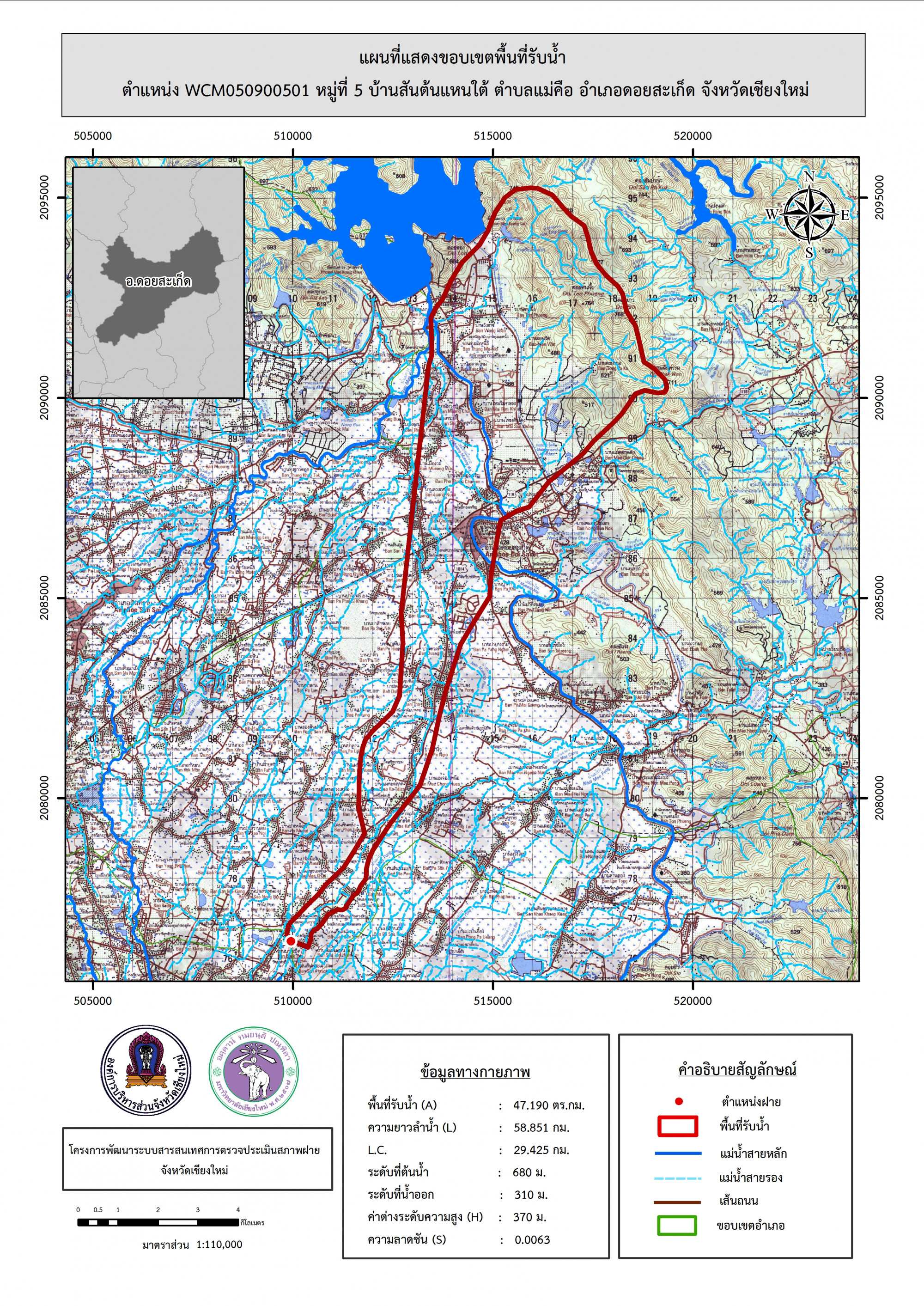 รูปภาพแผนที่แสดงขอบเขตพื้นที่รับน้ำ