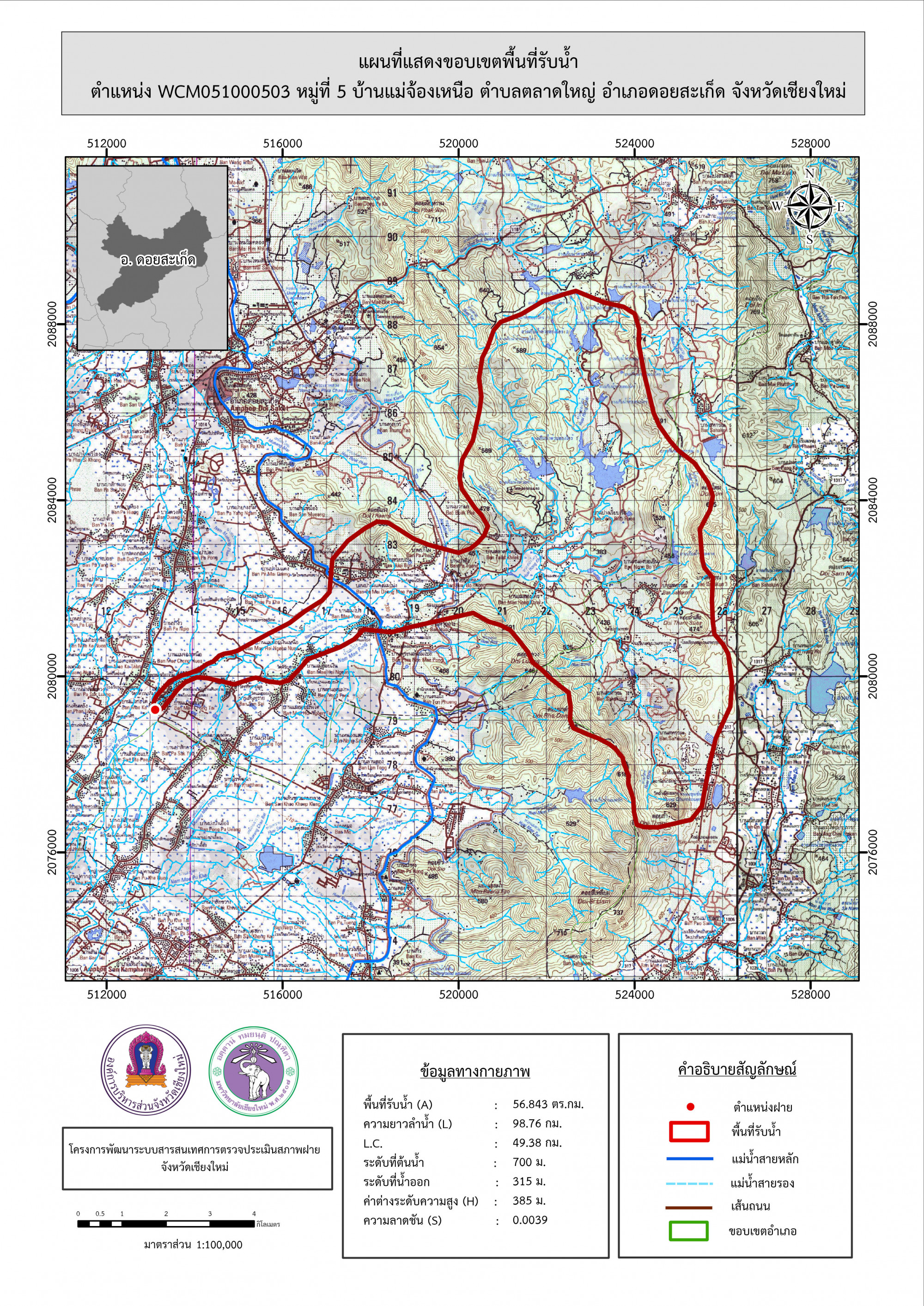 รูปภาพแผนที่แสดงขอบเขตพื้นที่รับน้ำ