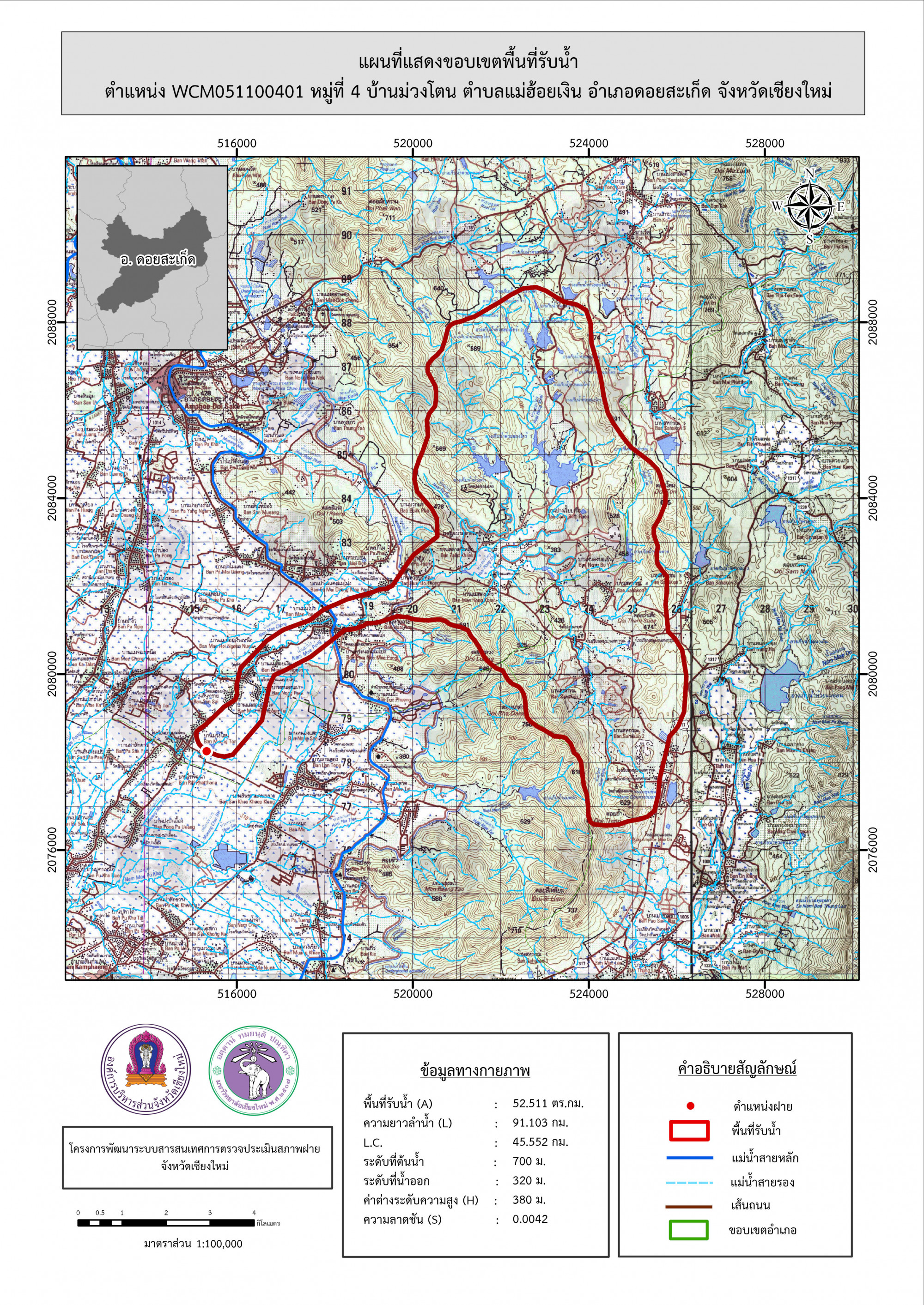 รูปภาพแผนที่แสดงขอบเขตพื้นที่รับน้ำ