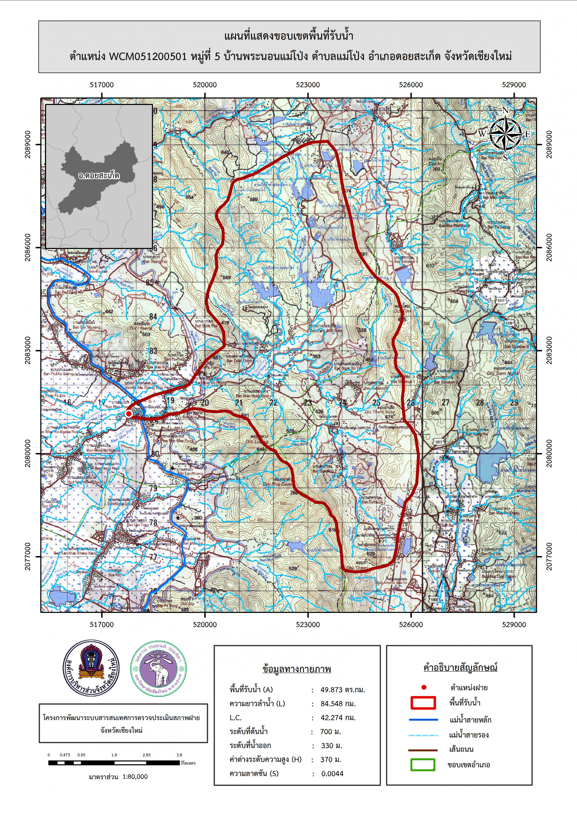 รูปภาพแผนที่แสดงขอบเขตพื้นที่รับน้ำ
