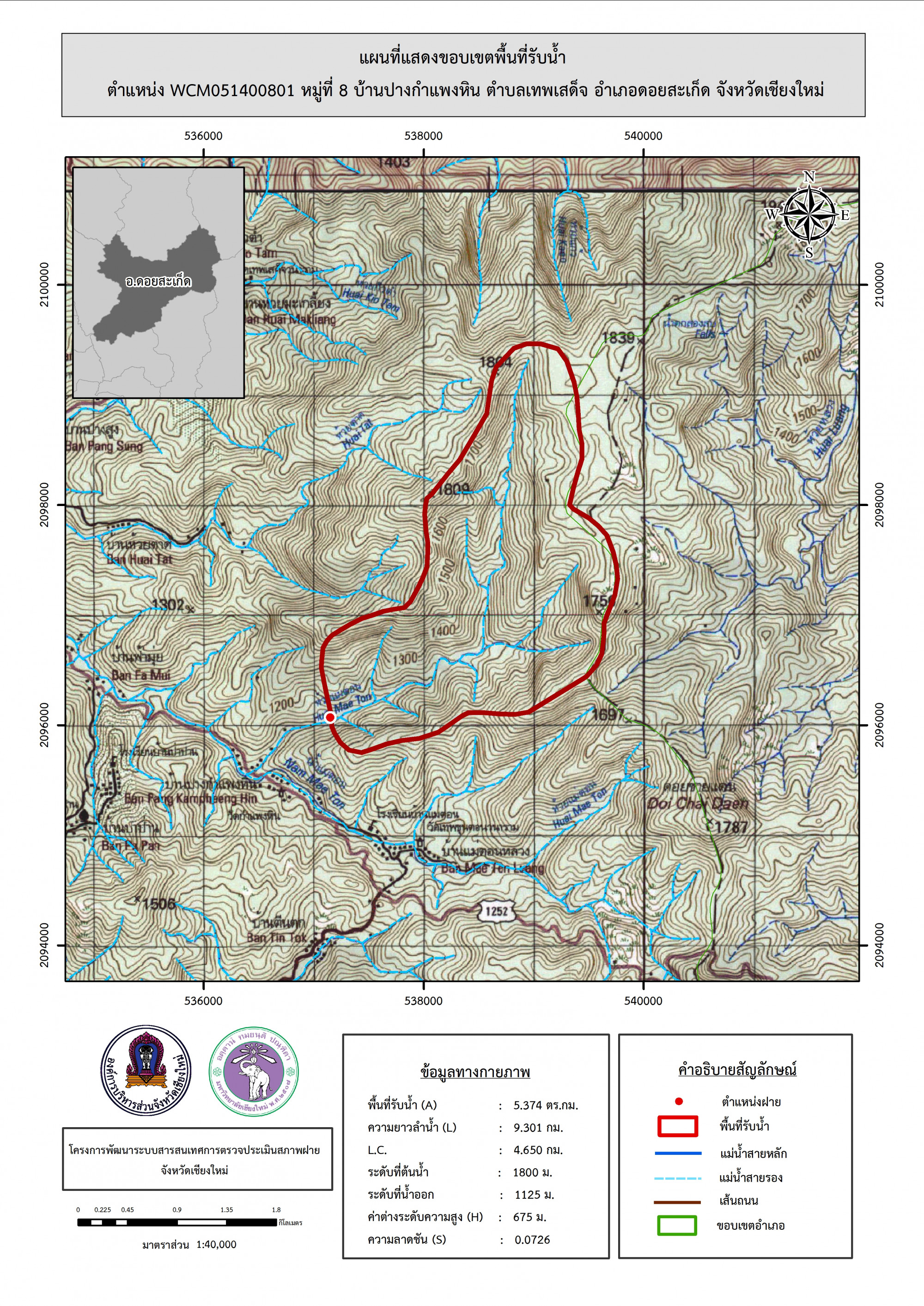 รูปภาพแผนที่แสดงขอบเขตพื้นที่รับน้ำ