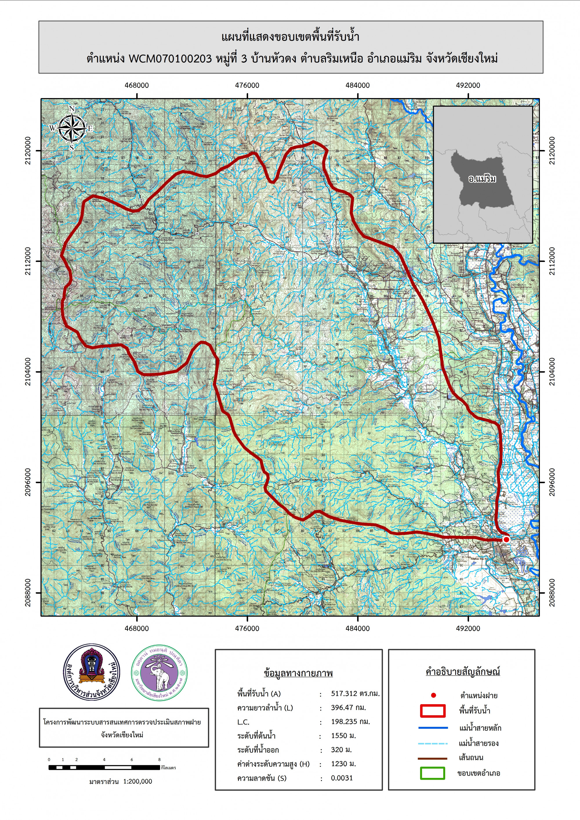 รูปภาพแผนที่แสดงขอบเขตพื้นที่รับน้ำ