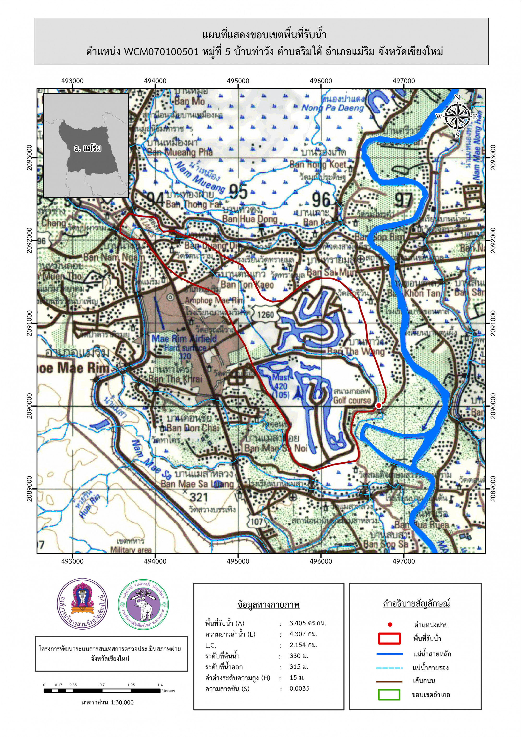 รูปภาพแผนที่แสดงขอบเขตพื้นที่รับน้ำ