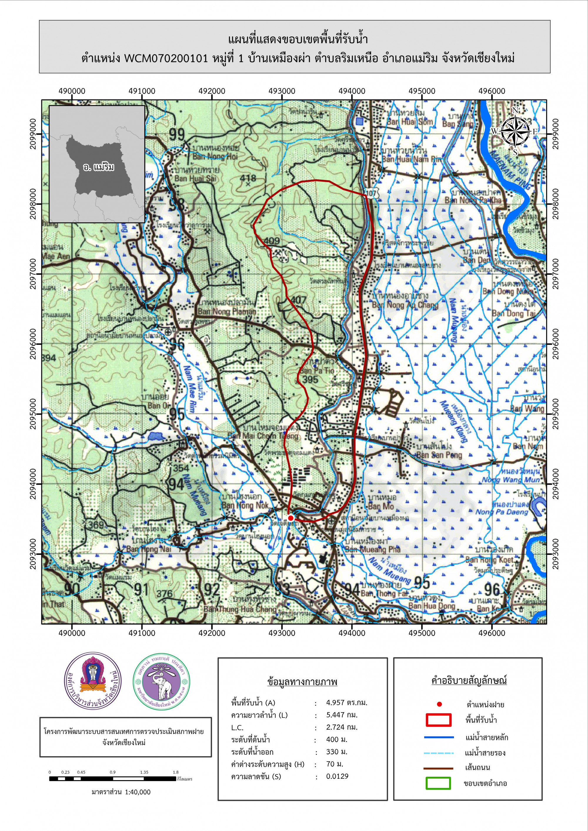 รูปภาพแผนที่แสดงขอบเขตพื้นที่รับน้ำ