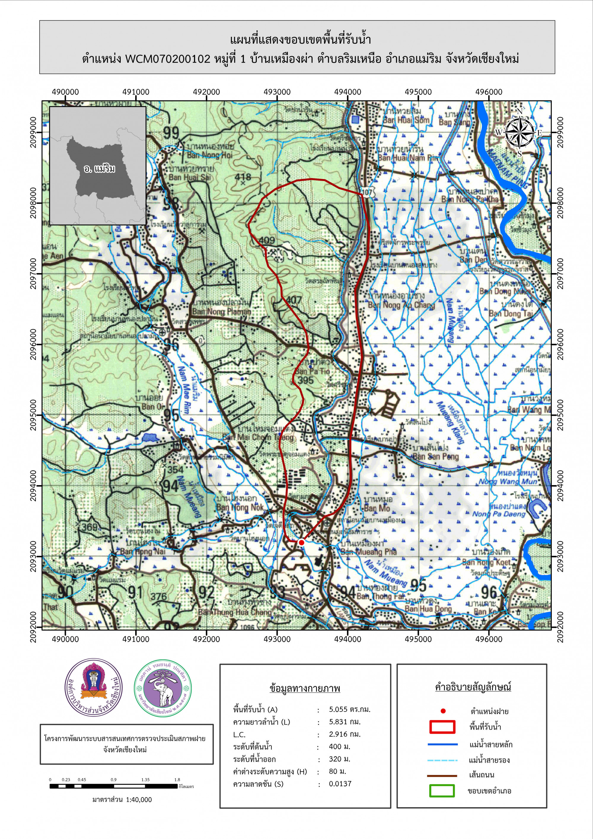 รูปภาพแผนที่แสดงขอบเขตพื้นที่รับน้ำ