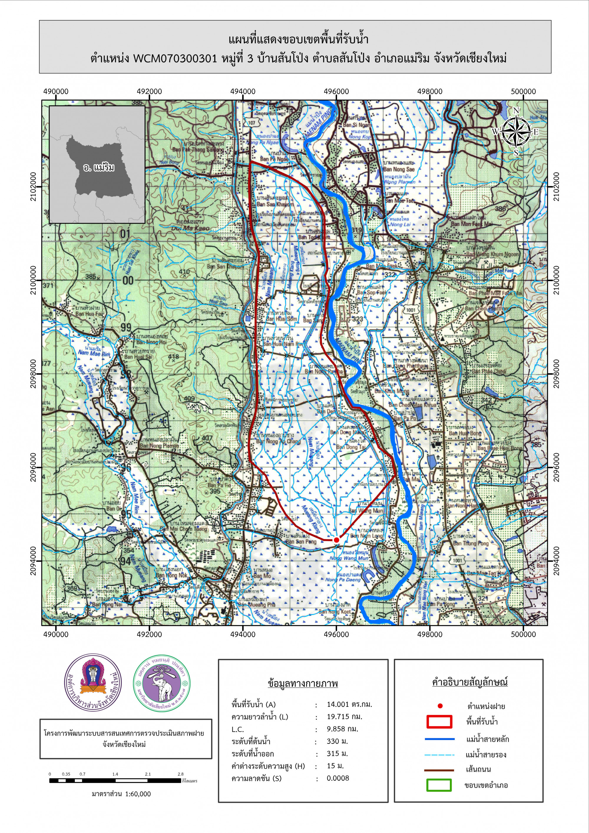 รูปภาพแผนที่แสดงขอบเขตพื้นที่รับน้ำ