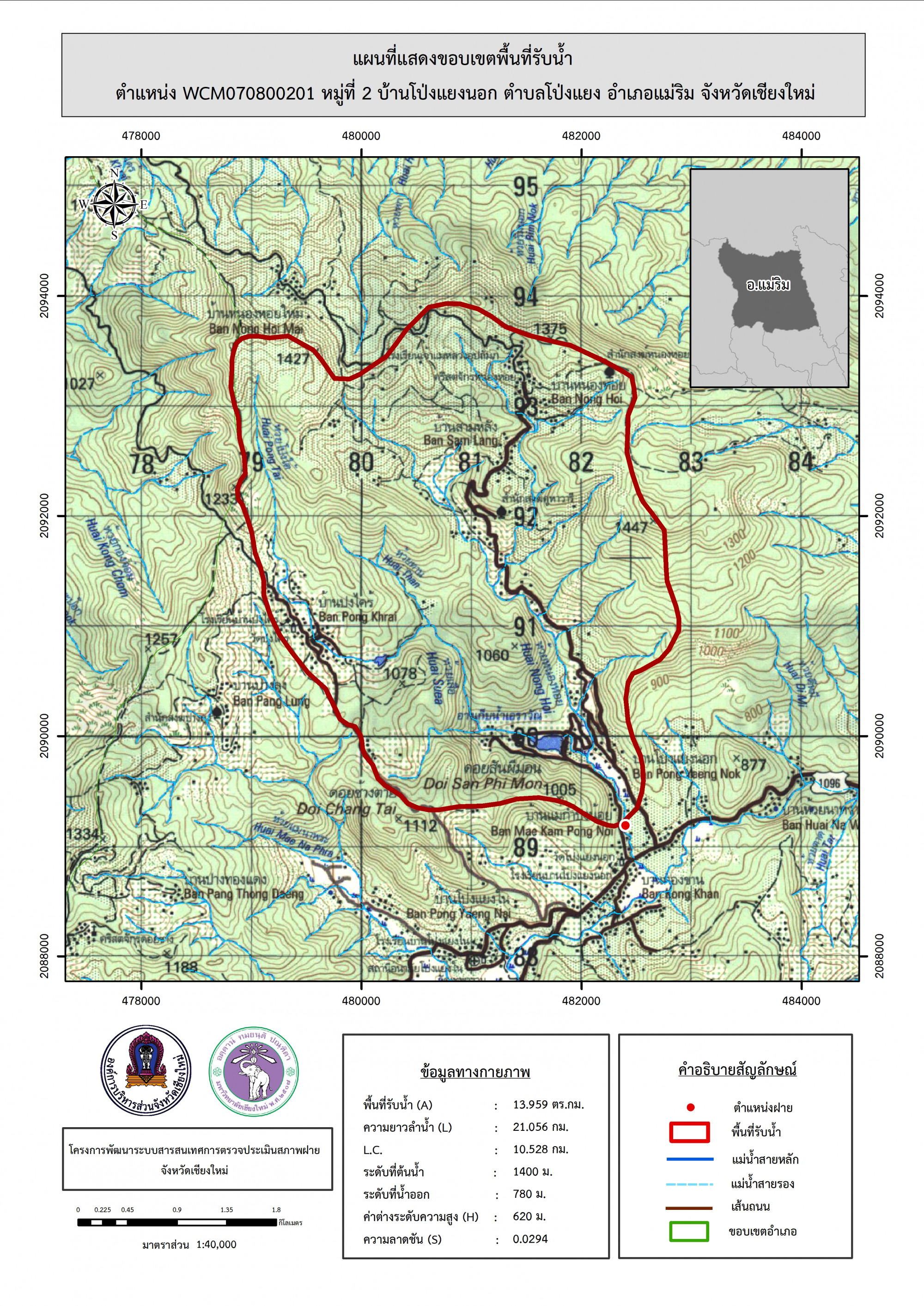 รูปภาพแผนที่แสดงขอบเขตพื้นที่รับน้ำ