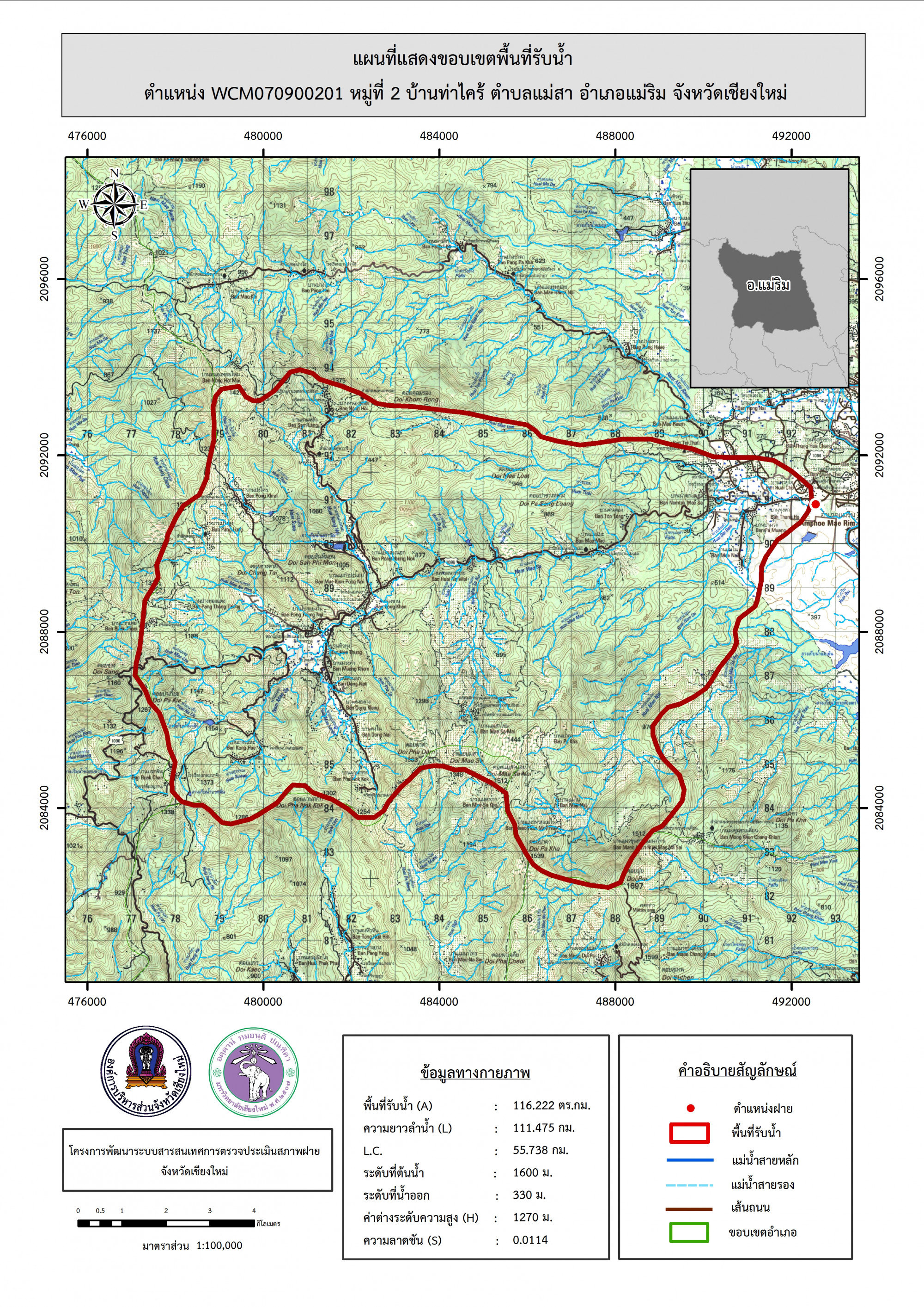 รูปภาพแผนที่แสดงขอบเขตพื้นที่รับน้ำ