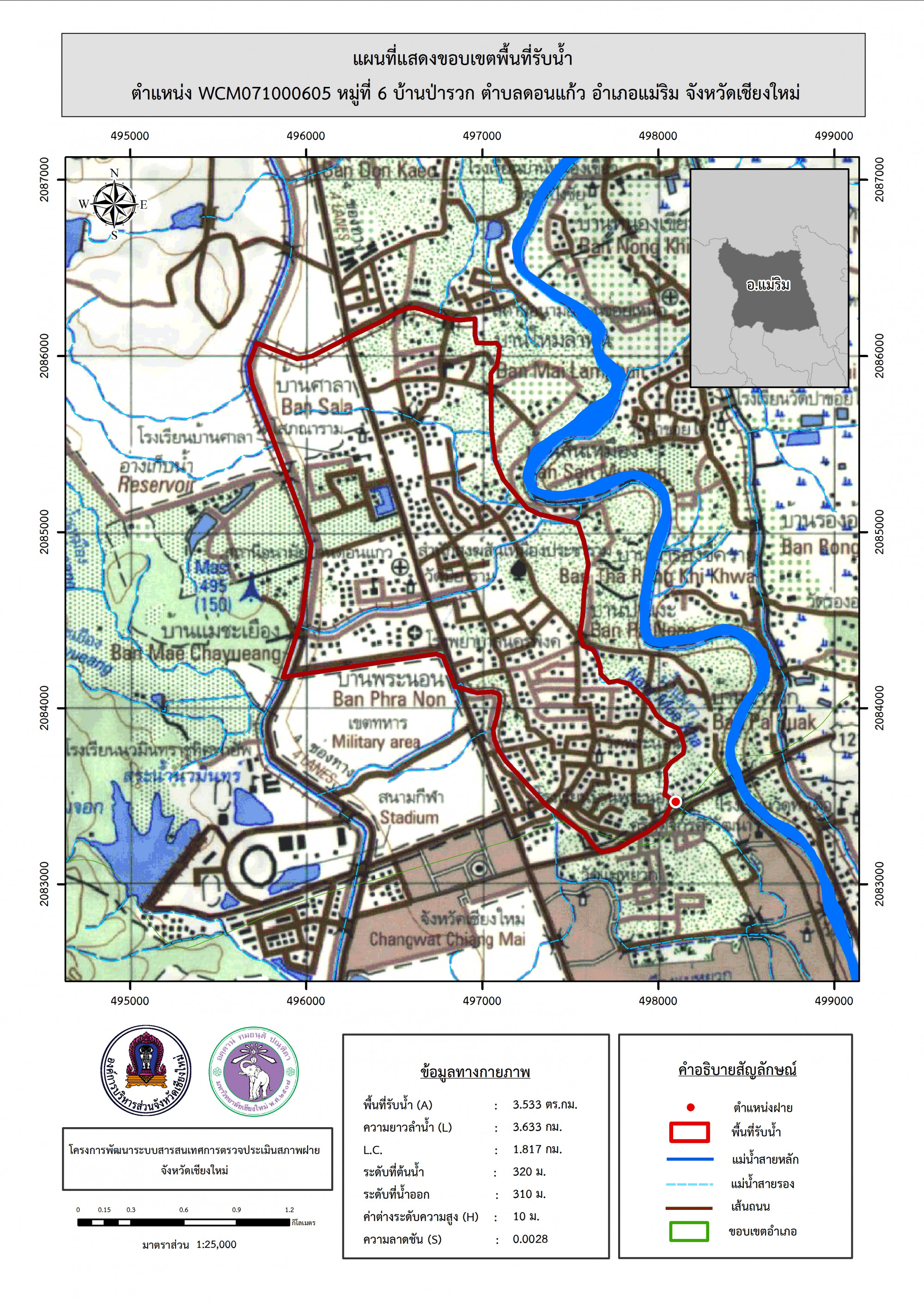 รูปภาพแผนที่แสดงขอบเขตพื้นที่รับน้ำ