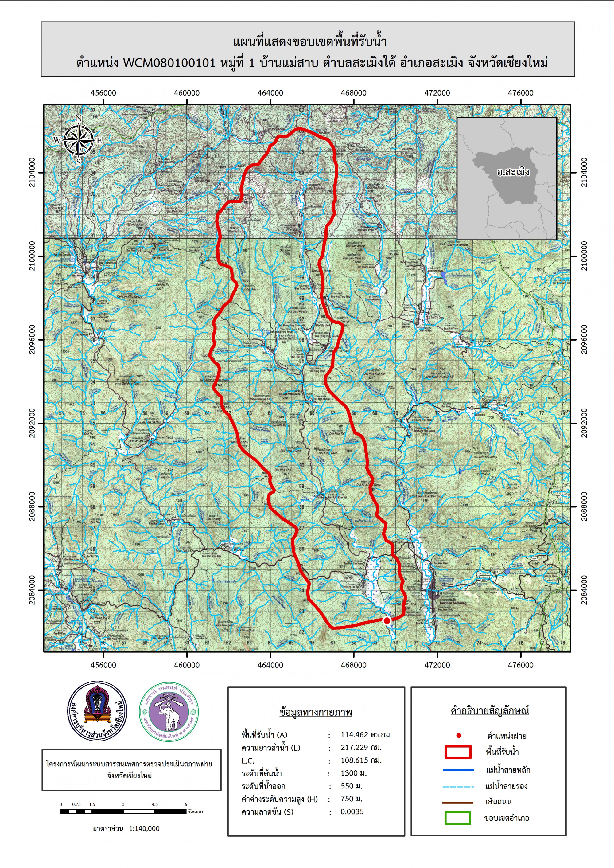 รูปภาพแผนที่แสดงขอบเขตพื้นที่รับน้ำ