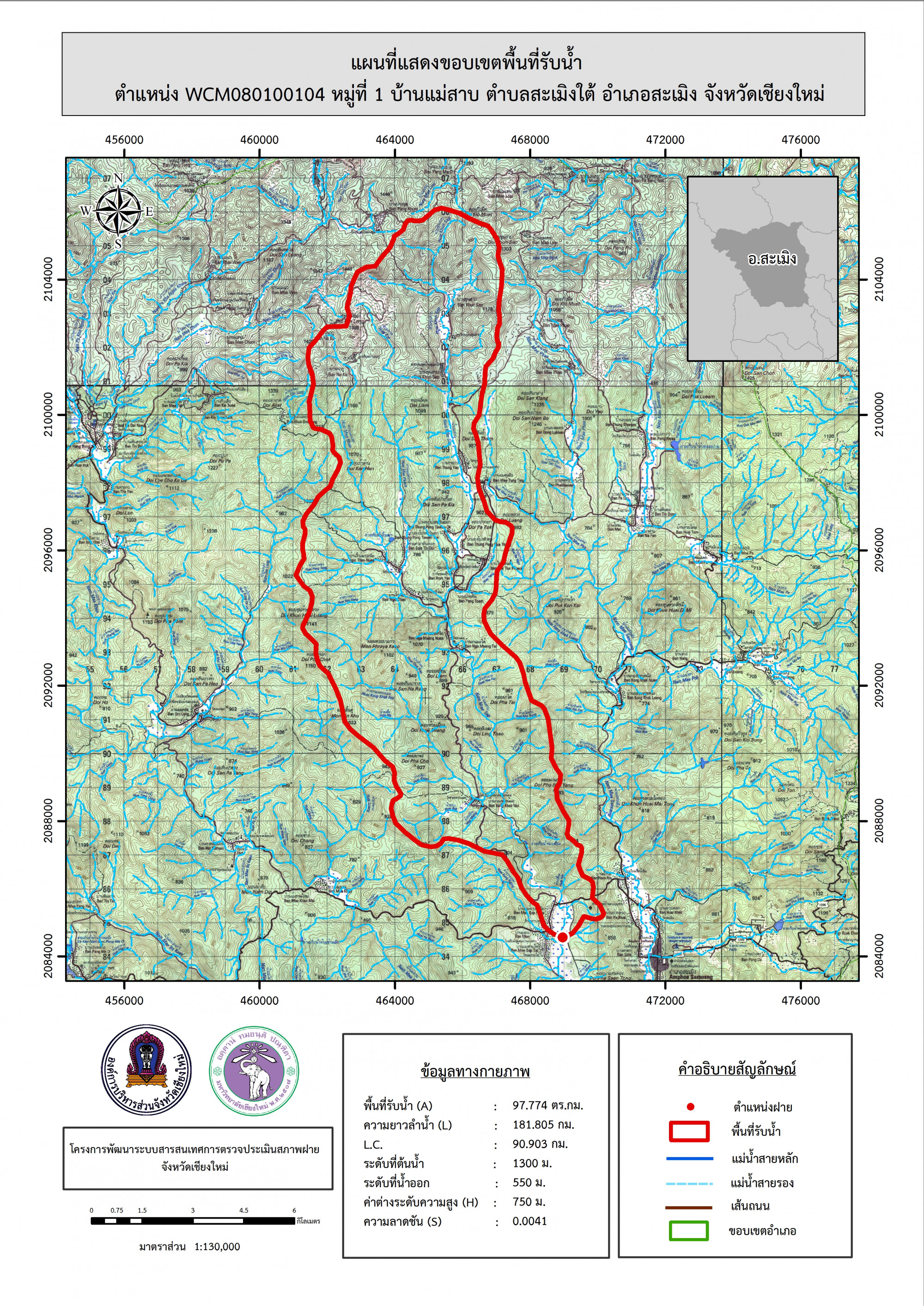 รูปภาพแผนที่แสดงขอบเขตพื้นที่รับน้ำ