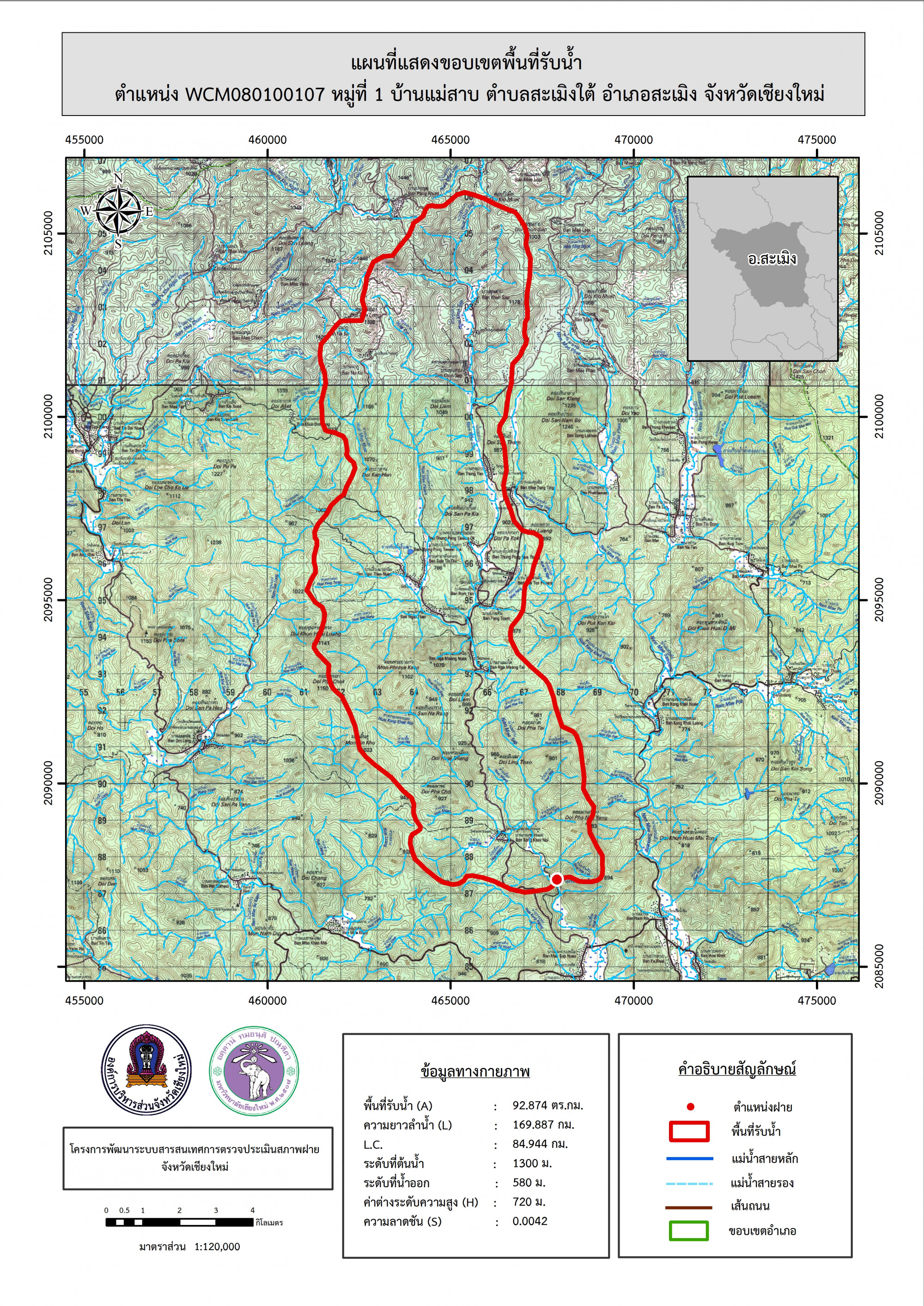 รูปภาพแผนที่แสดงขอบเขตพื้นที่รับน้ำ