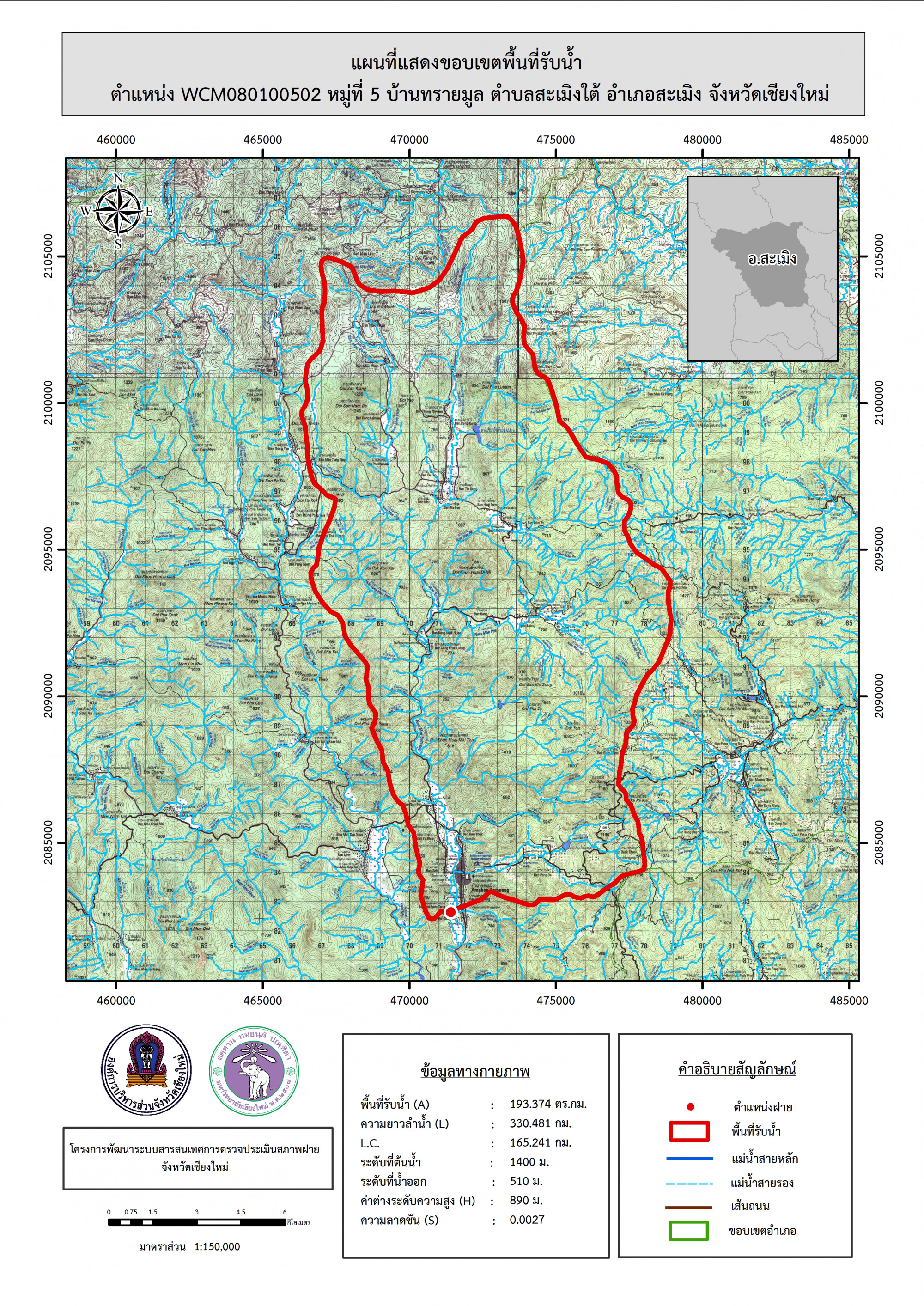 รูปภาพแผนที่แสดงขอบเขตพื้นที่รับน้ำ