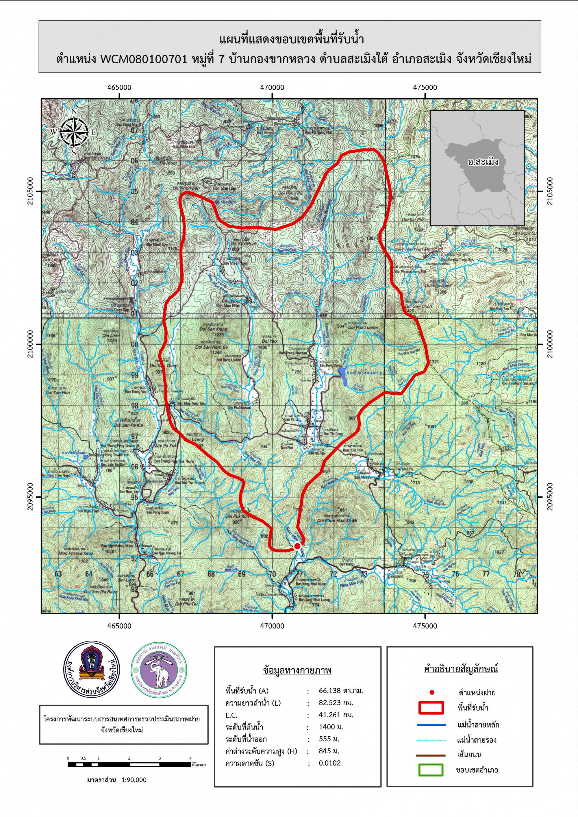 รูปภาพแผนที่แสดงขอบเขตพื้นที่รับน้ำ
