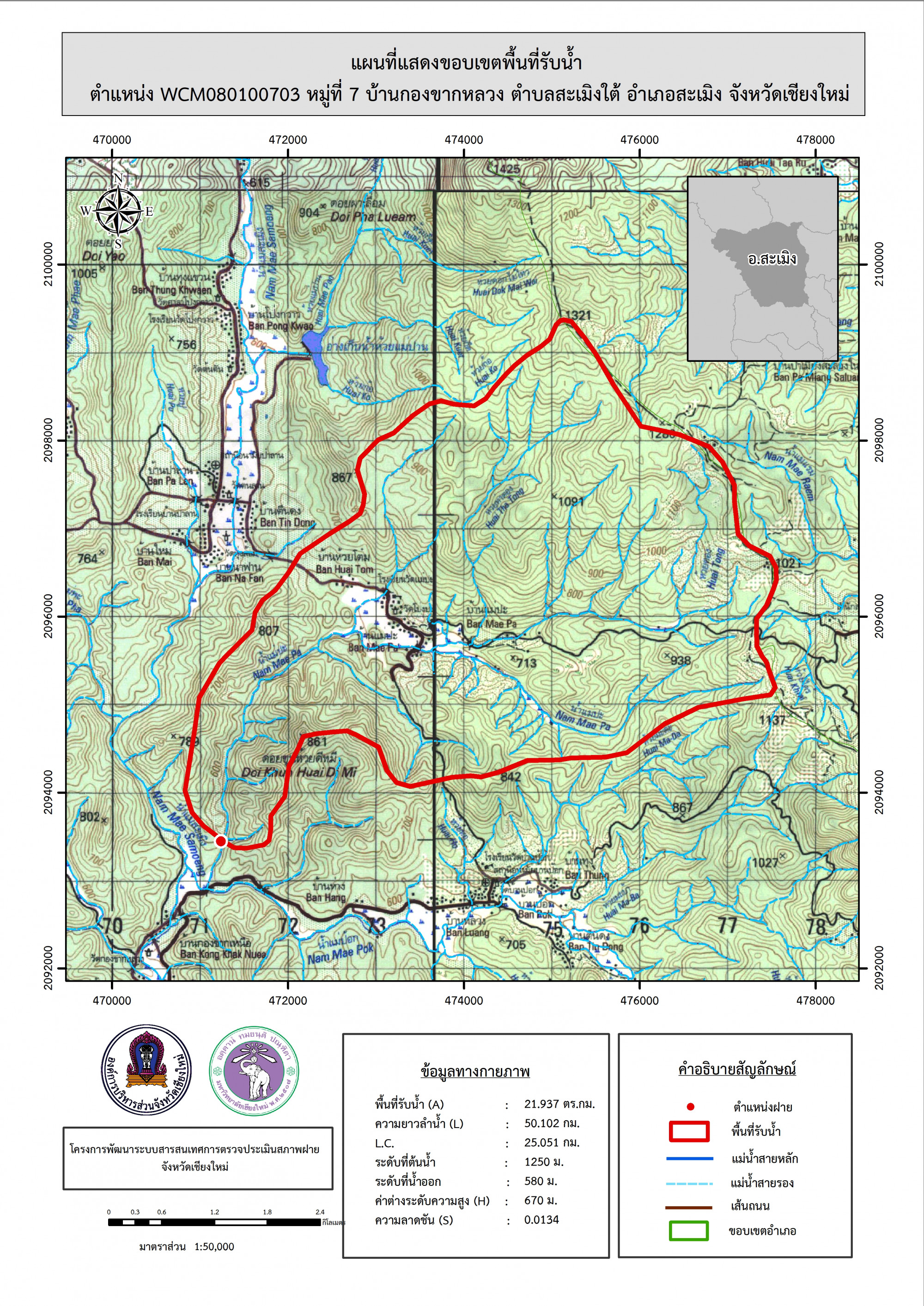 รูปภาพแผนที่แสดงขอบเขตพื้นที่รับน้ำ