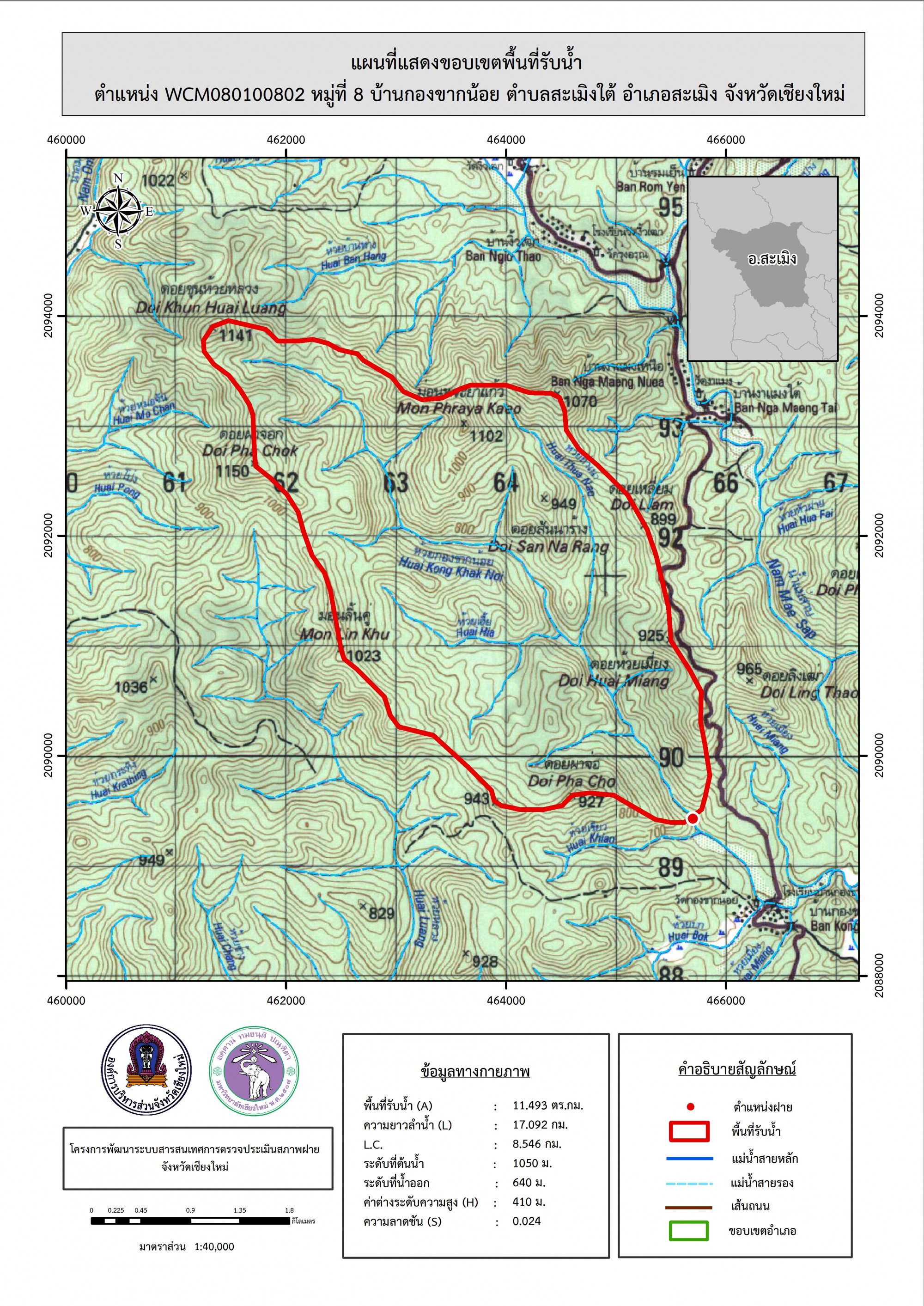 รูปภาพแผนที่แสดงขอบเขตพื้นที่รับน้ำ