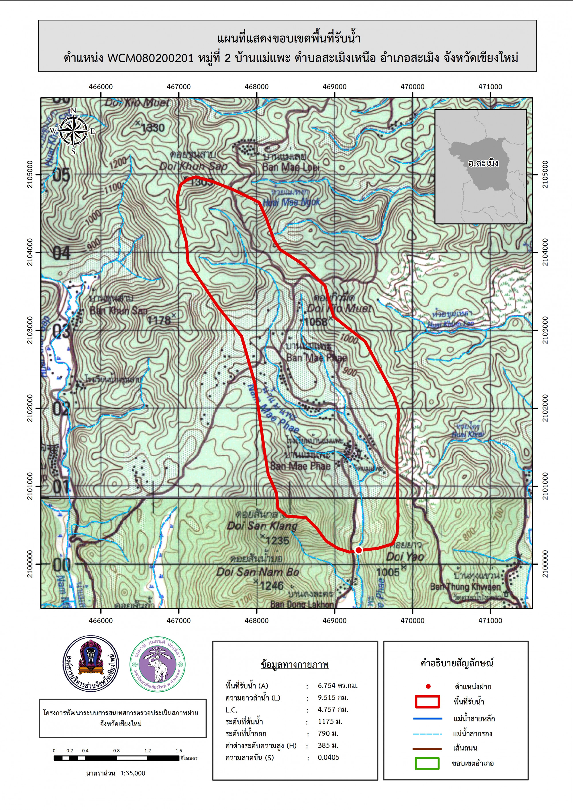 รูปภาพแผนที่แสดงขอบเขตพื้นที่รับน้ำ