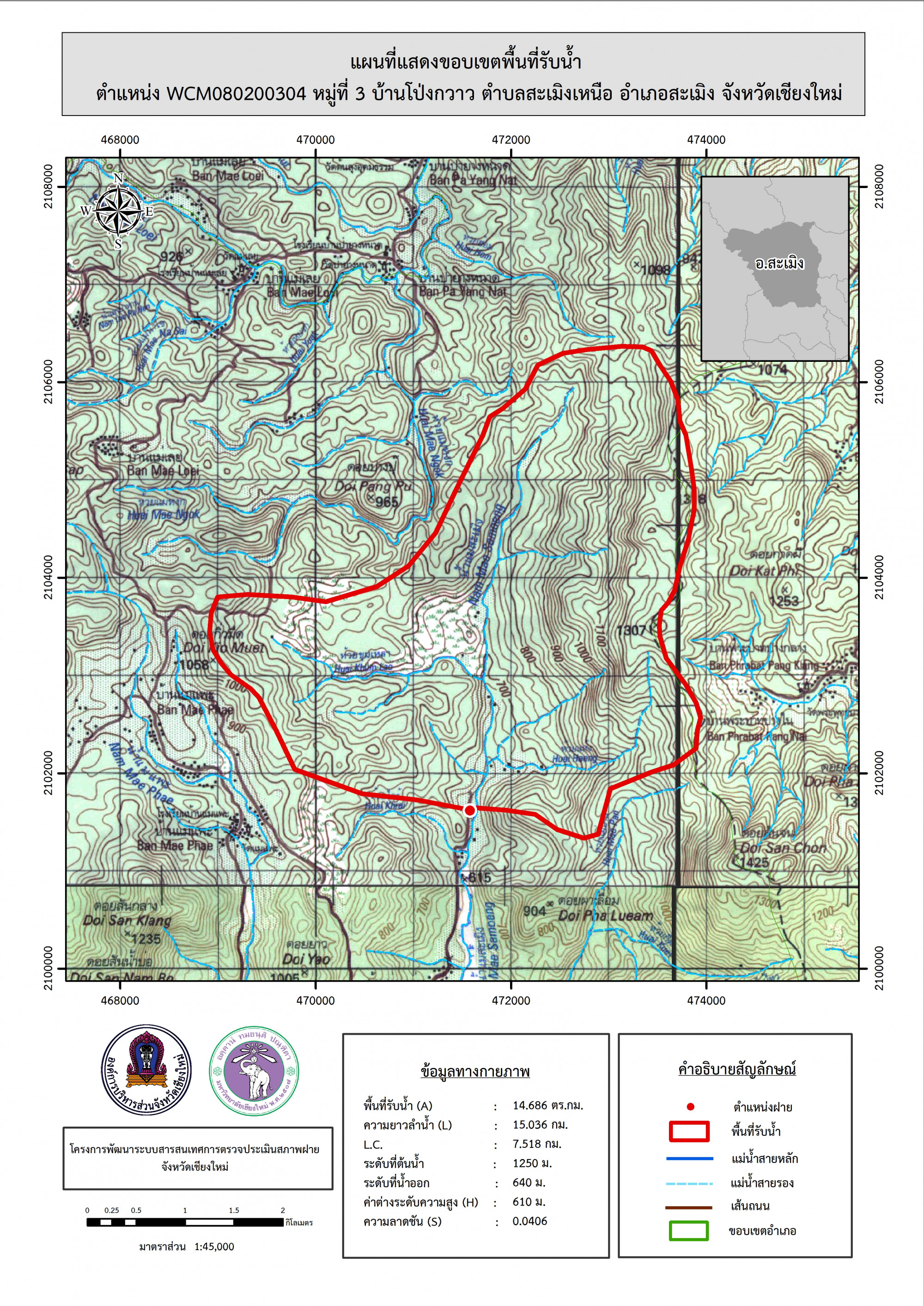 รูปภาพแผนที่แสดงขอบเขตพื้นที่รับน้ำ