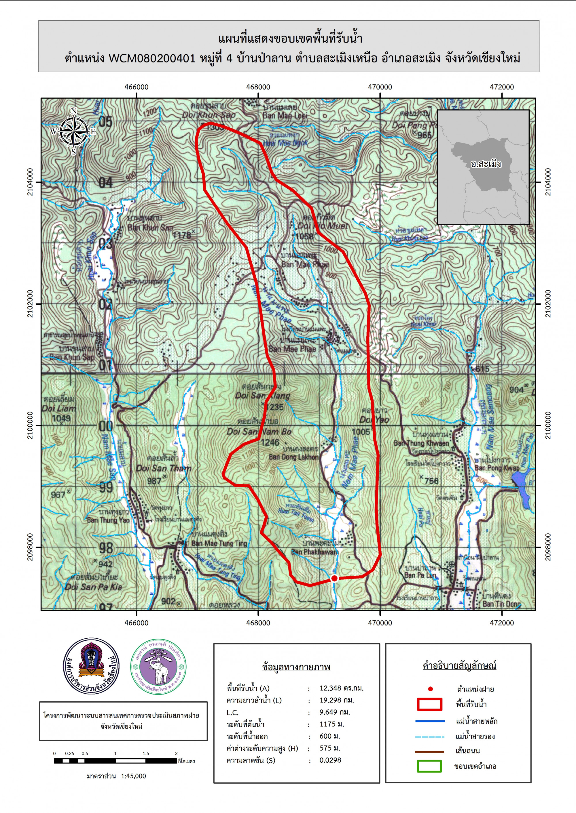 รูปภาพแผนที่แสดงขอบเขตพื้นที่รับน้ำ