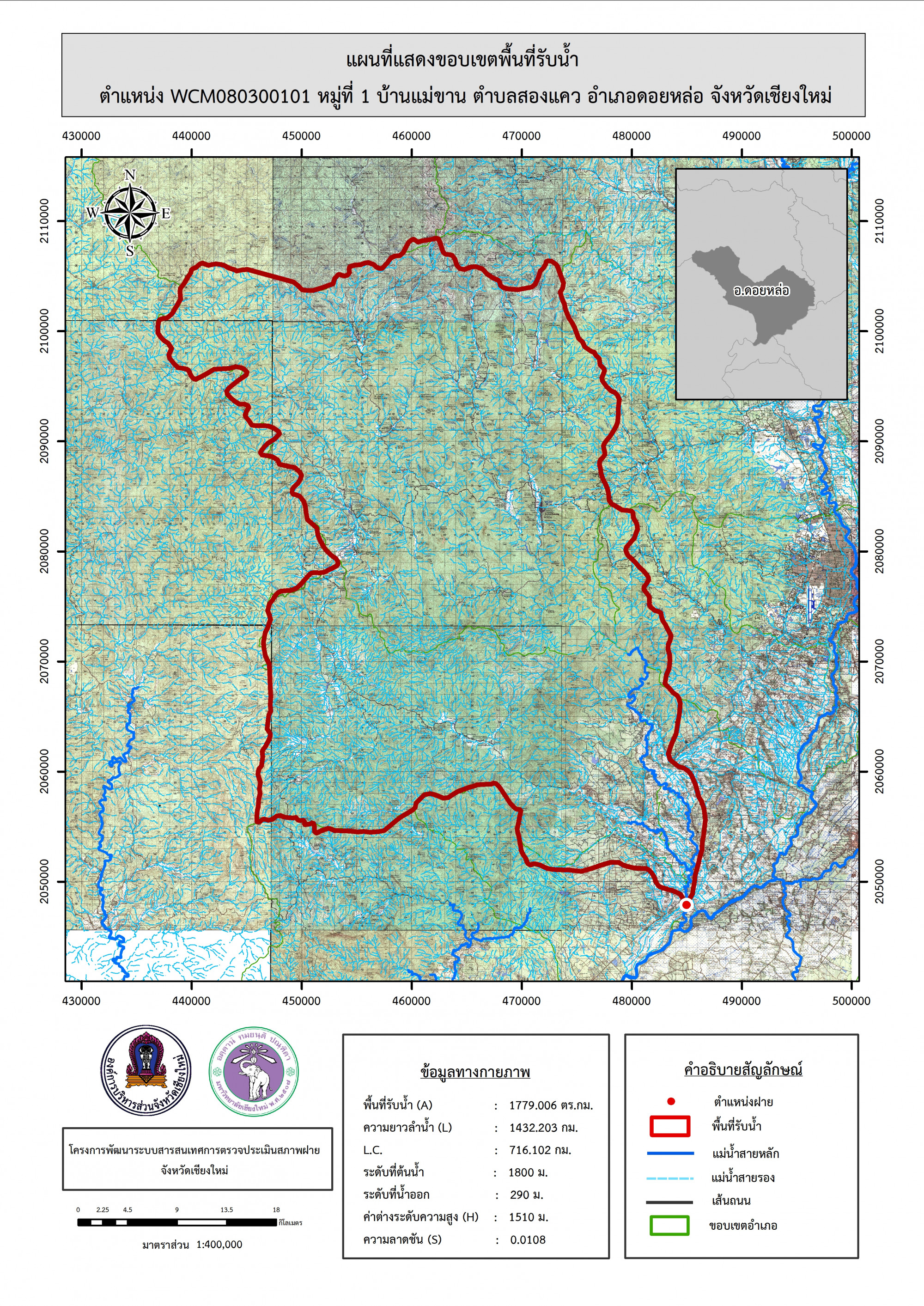 รูปภาพแผนที่แสดงขอบเขตพื้นที่รับน้ำ