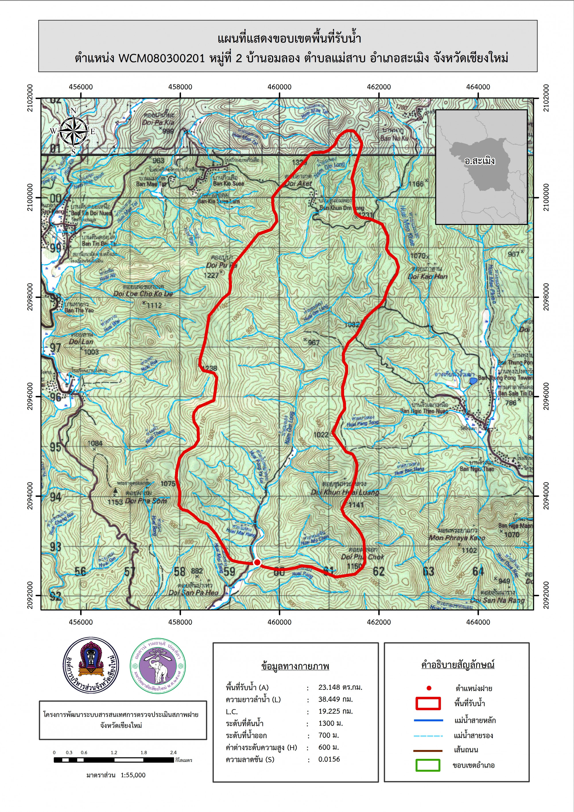 รูปภาพแผนที่แสดงขอบเขตพื้นที่รับน้ำ