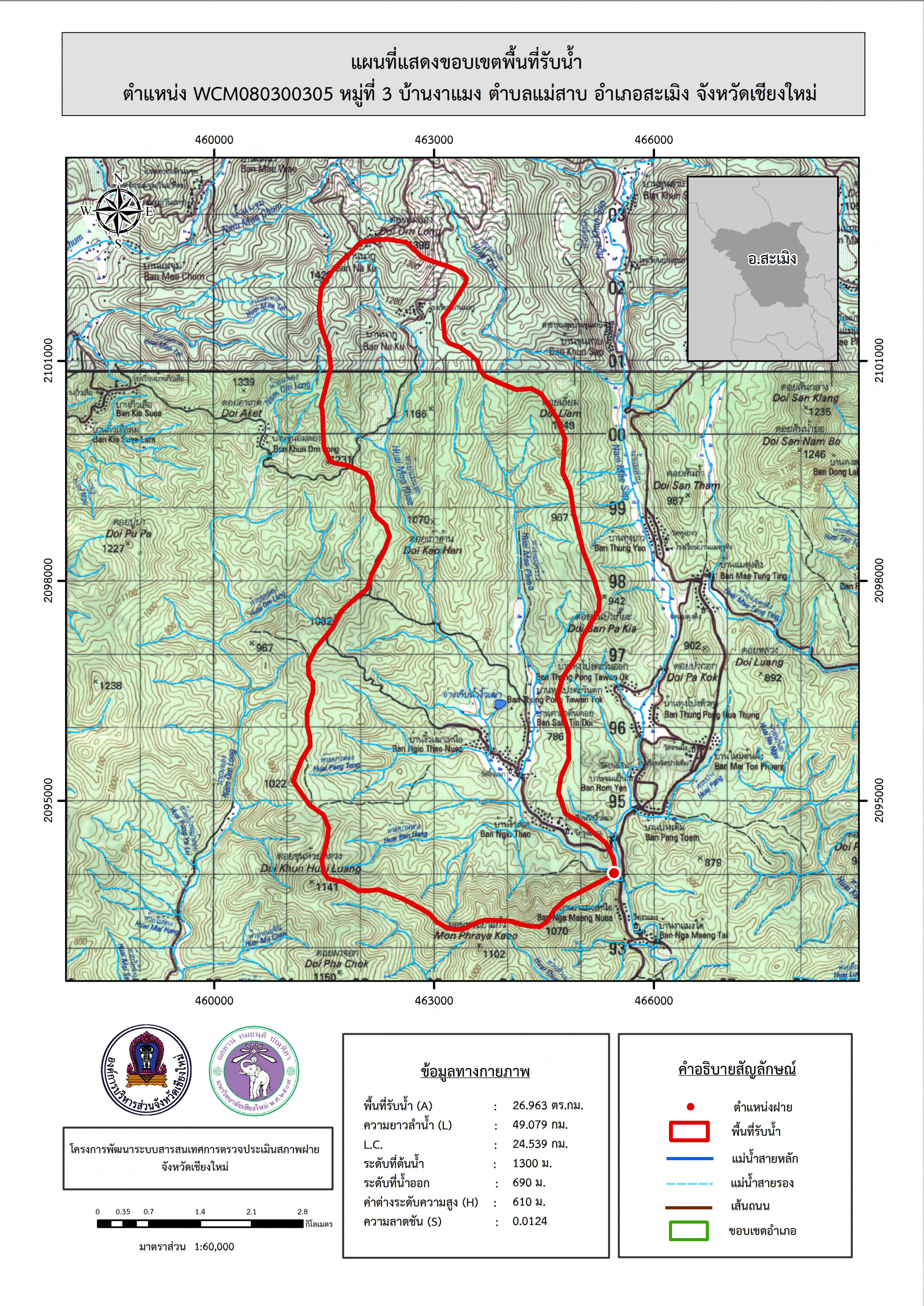 รูปภาพแผนที่แสดงขอบเขตพื้นที่รับน้ำ