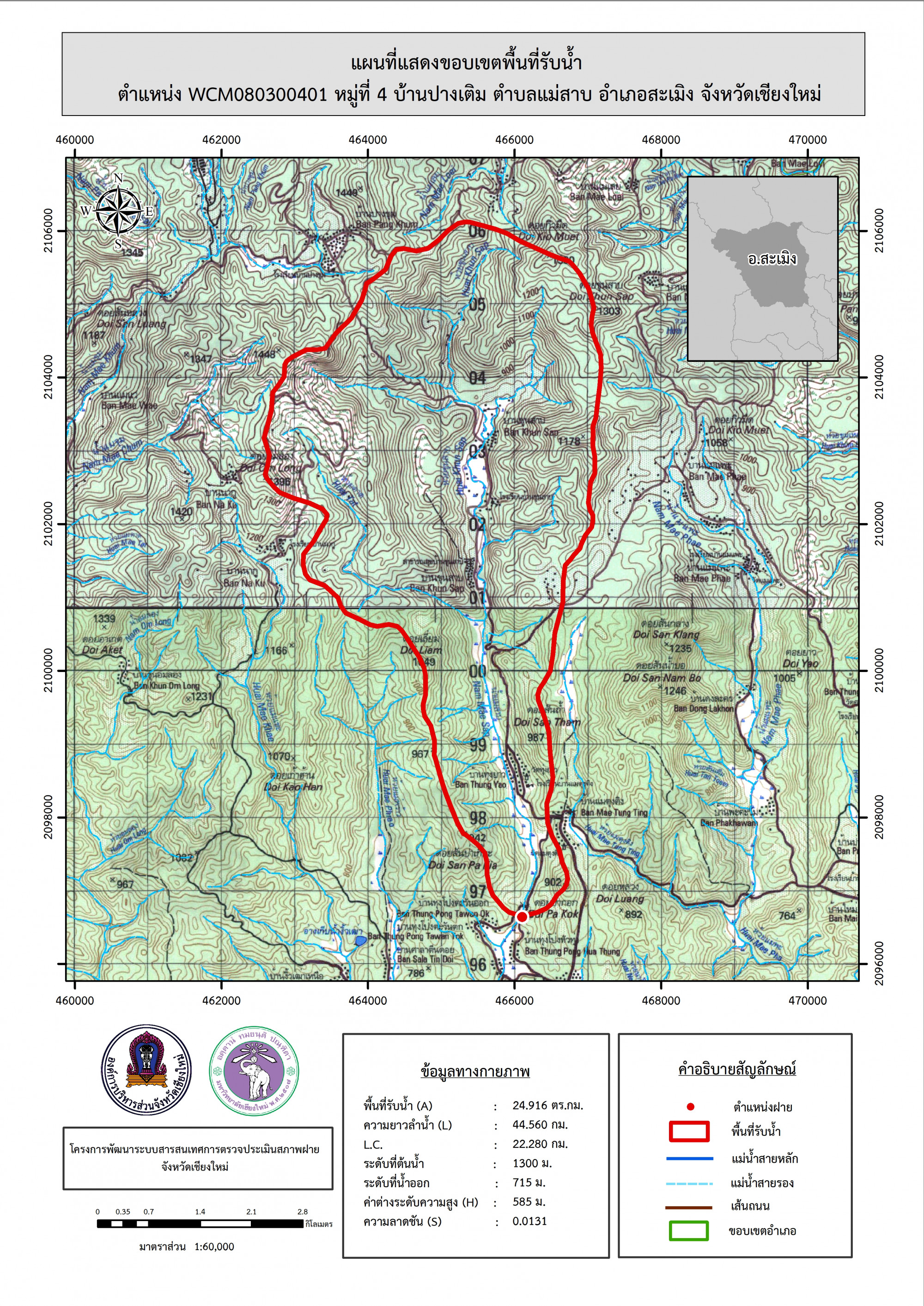 รูปภาพแผนที่แสดงขอบเขตพื้นที่รับน้ำ