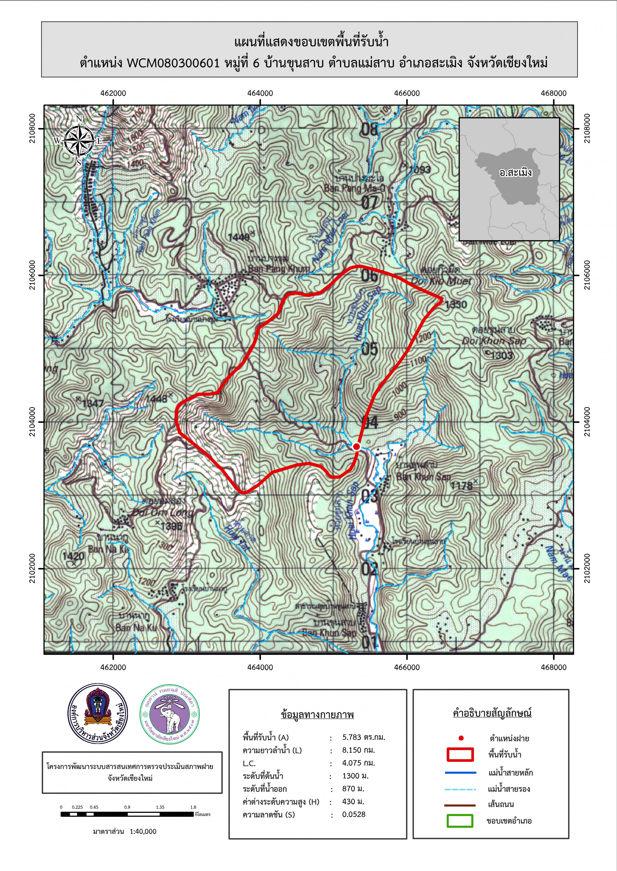 รูปภาพแผนที่แสดงขอบเขตพื้นที่รับน้ำ