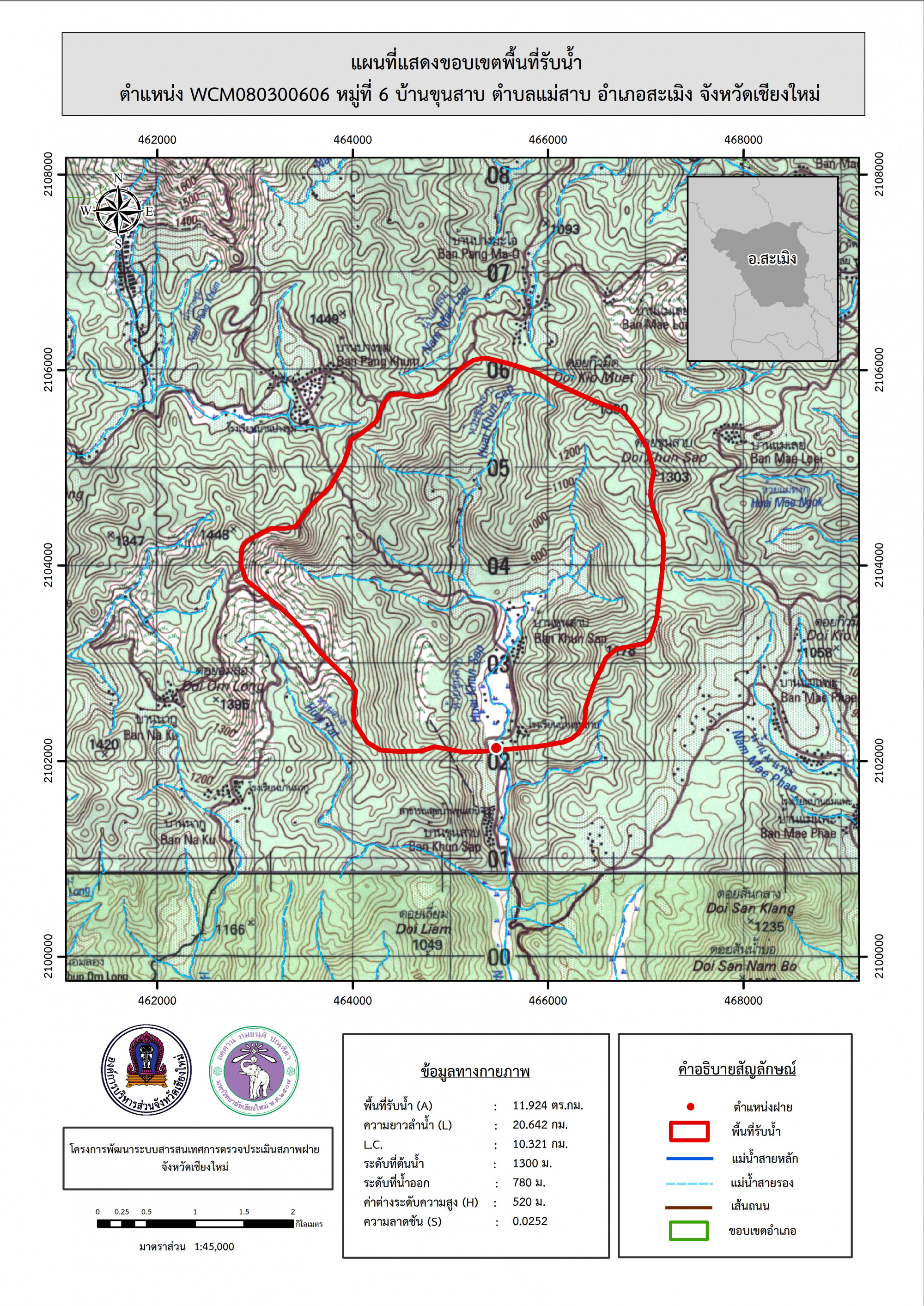 รูปภาพแผนที่แสดงขอบเขตพื้นที่รับน้ำ