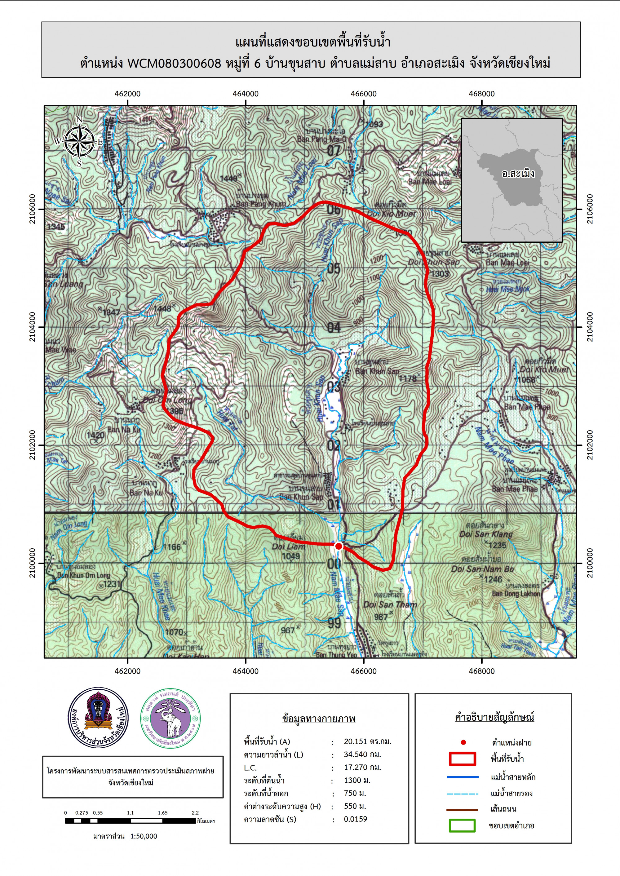 รูปภาพแผนที่แสดงขอบเขตพื้นที่รับน้ำ